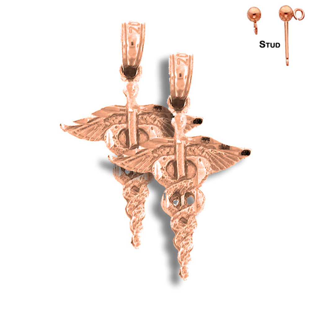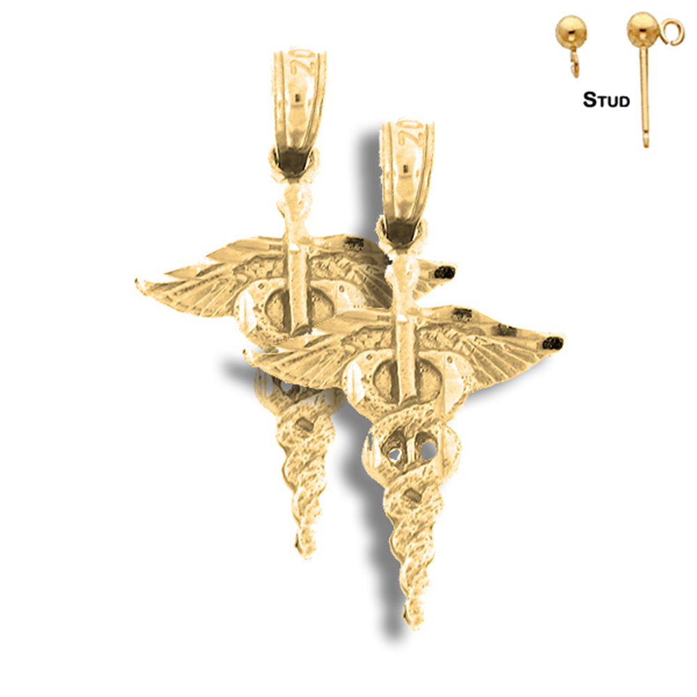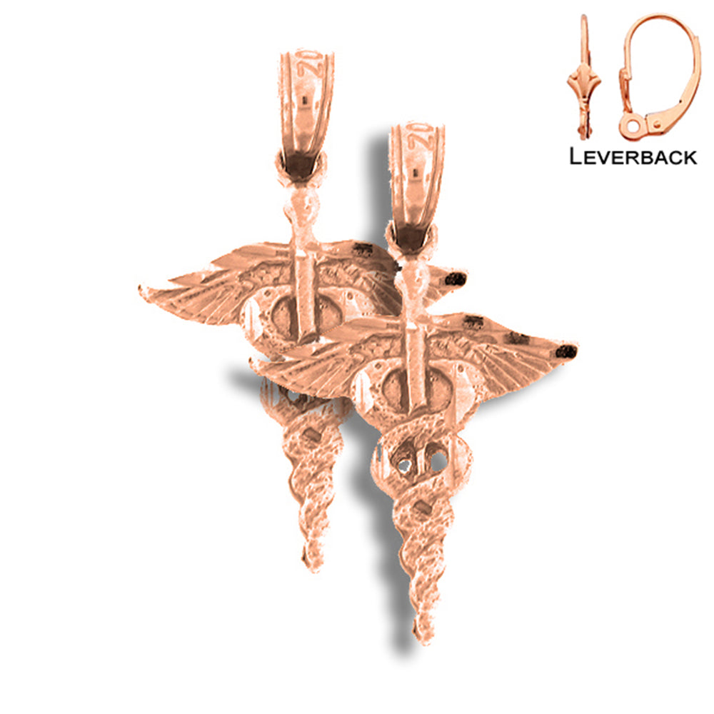 Caduceus-Ohrringe aus 14 Karat oder 18 Karat Gold, 16 mm