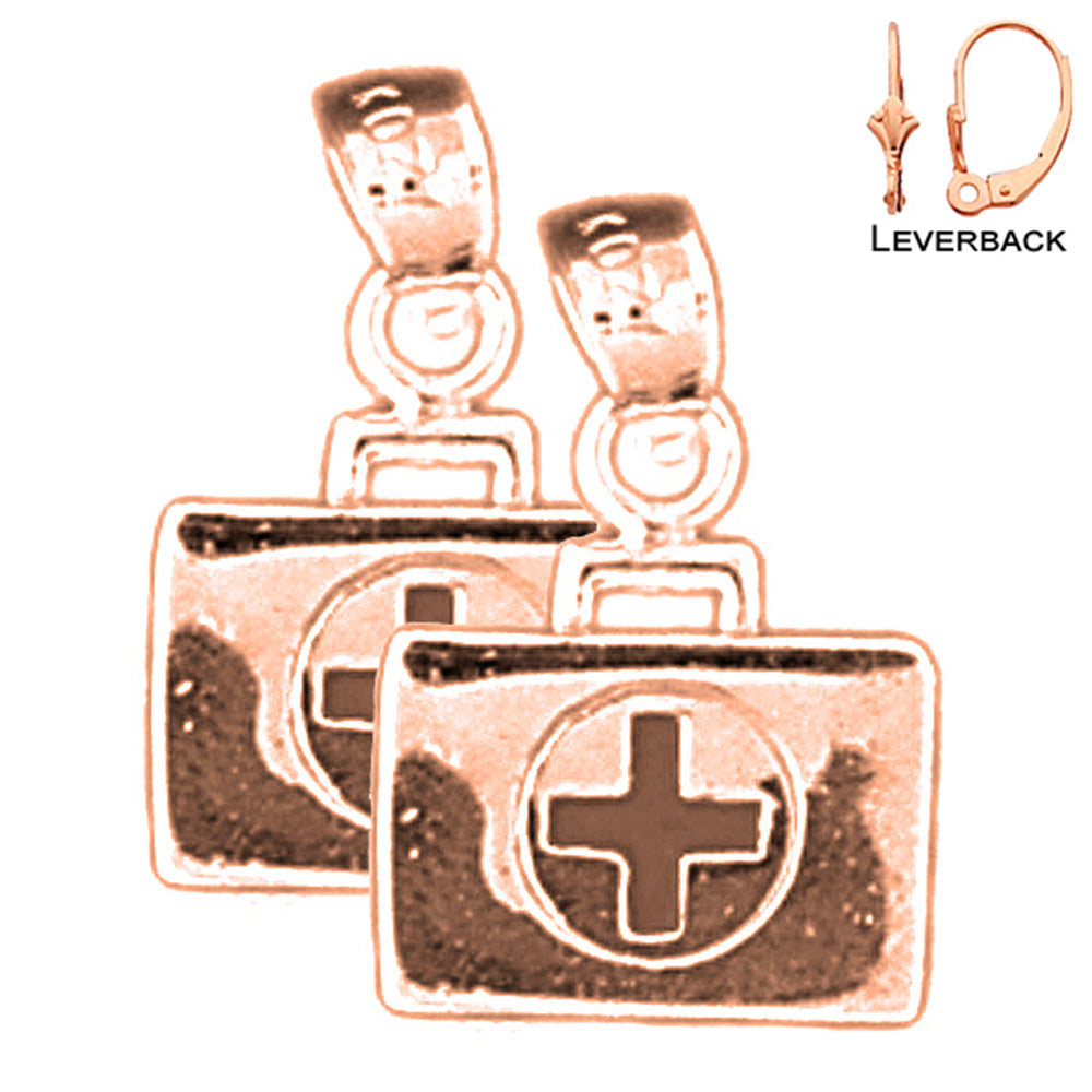 14K oder 18K Gold 17mm 3D Arzttasche Ohrringe