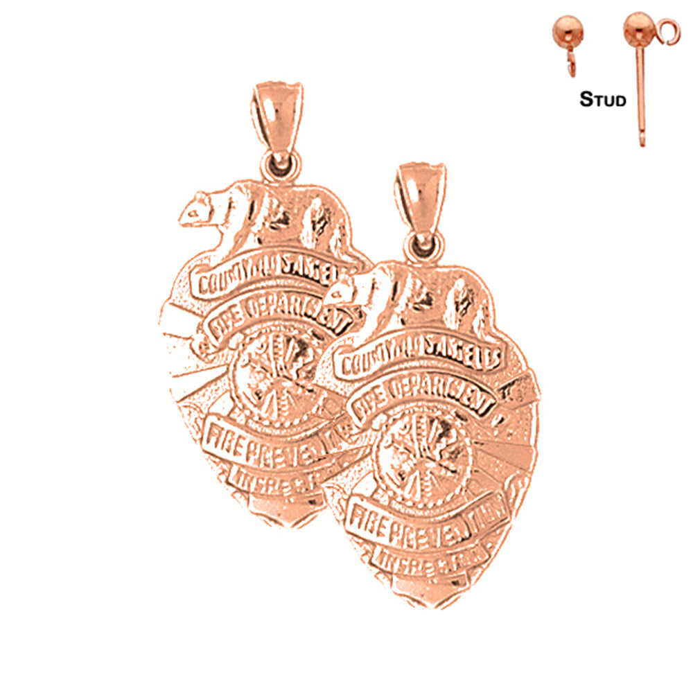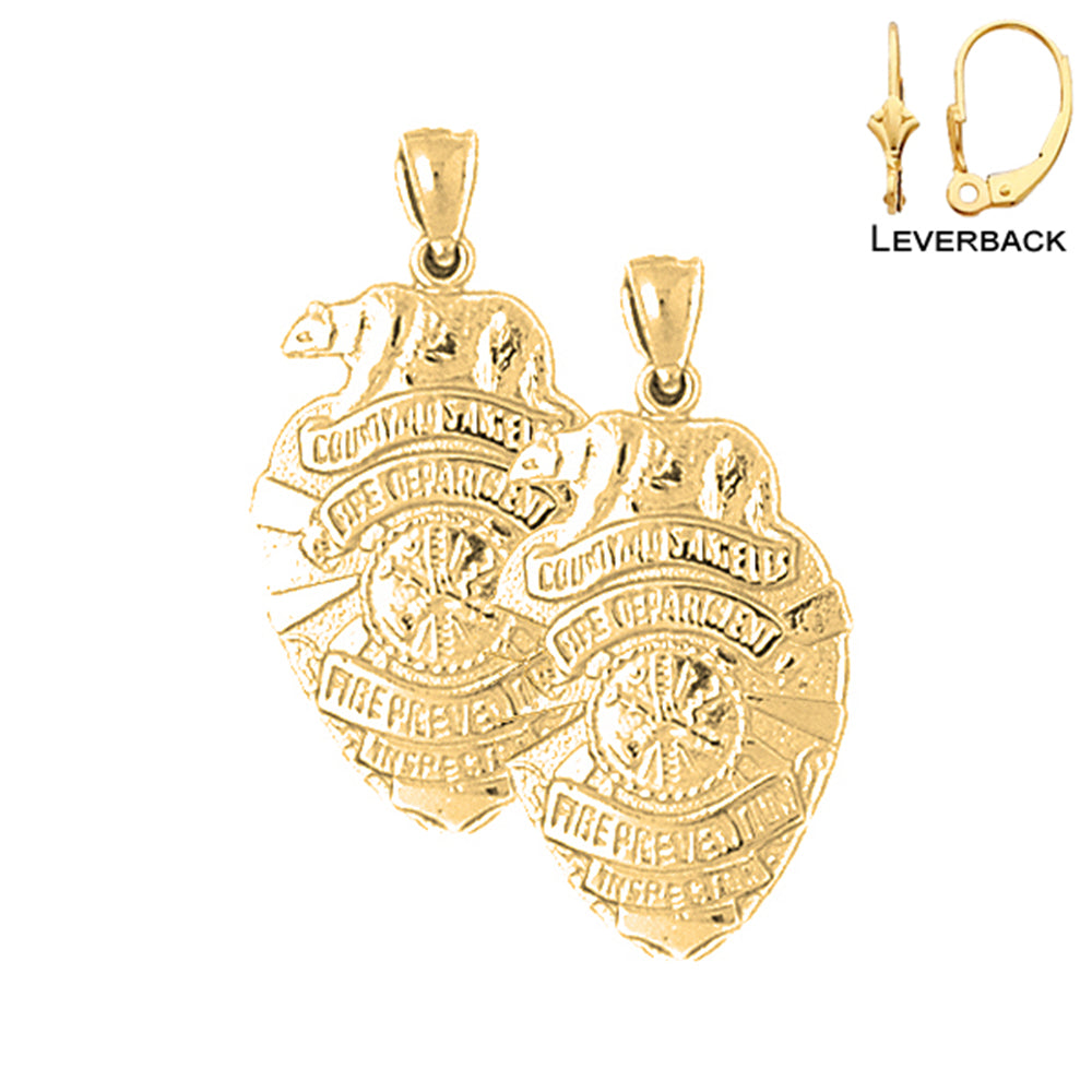 14K or 18K Gold 19mm Fire Department Earrings