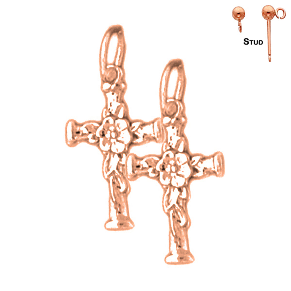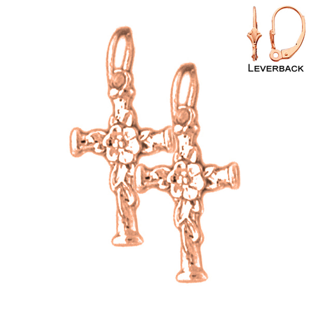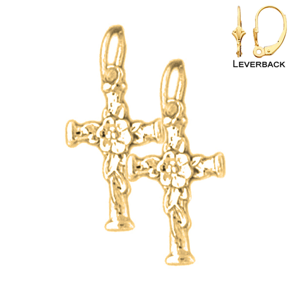 14K oder 18K Gold Florale Kreuz Ohrringe