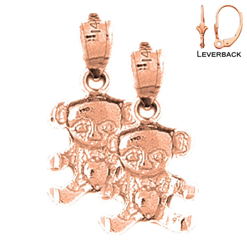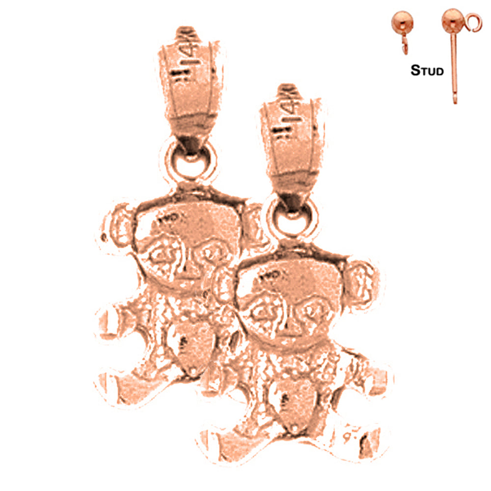14K or 18K Gold 19mm Teddy Bear Earrings