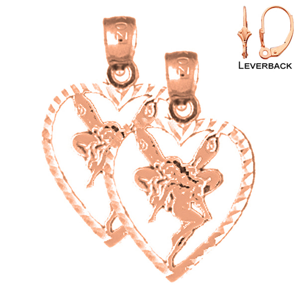 14K or 18K Gold 21mm Heart With Fairy Earrings