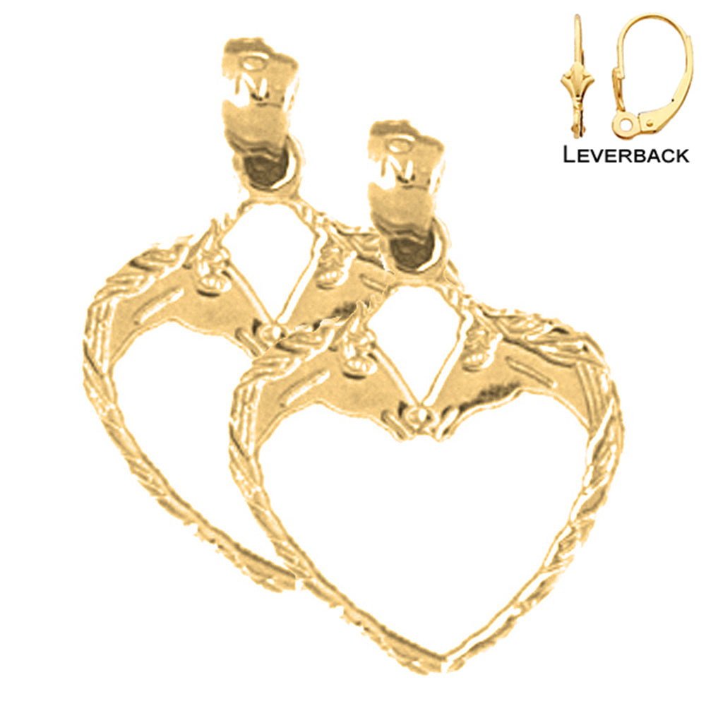 14K oder 18K Gold 21mm Pferdeherz Ohrringe