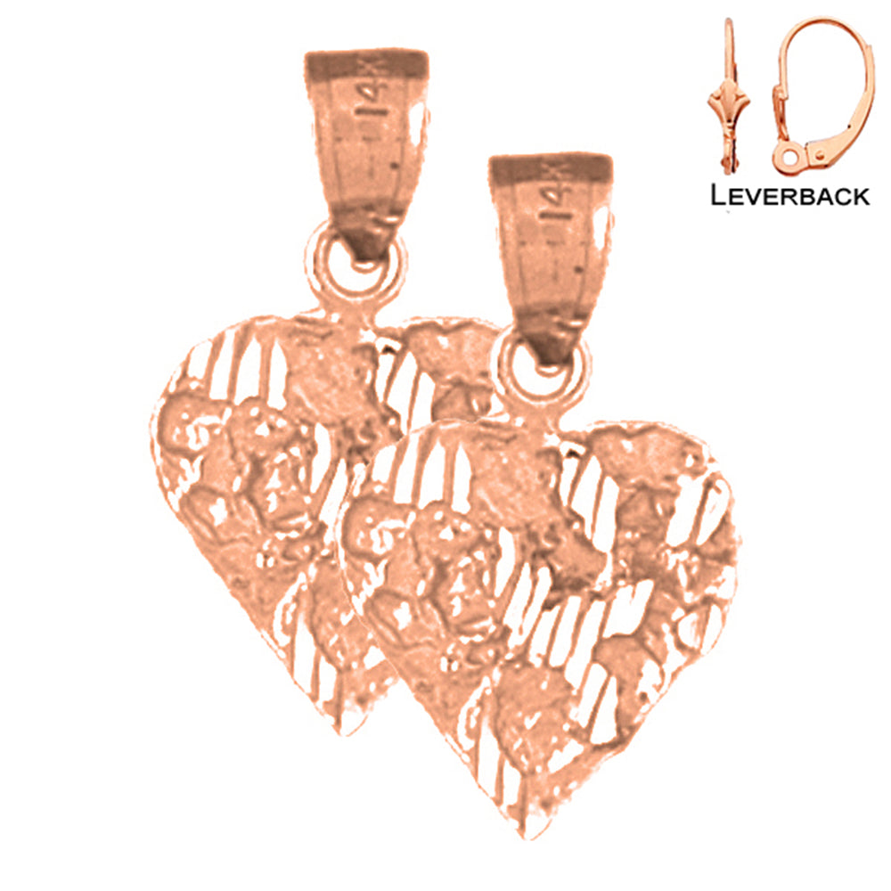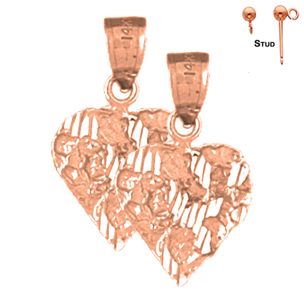14K or 18K Gold 21mm Nugget Heart Earrings