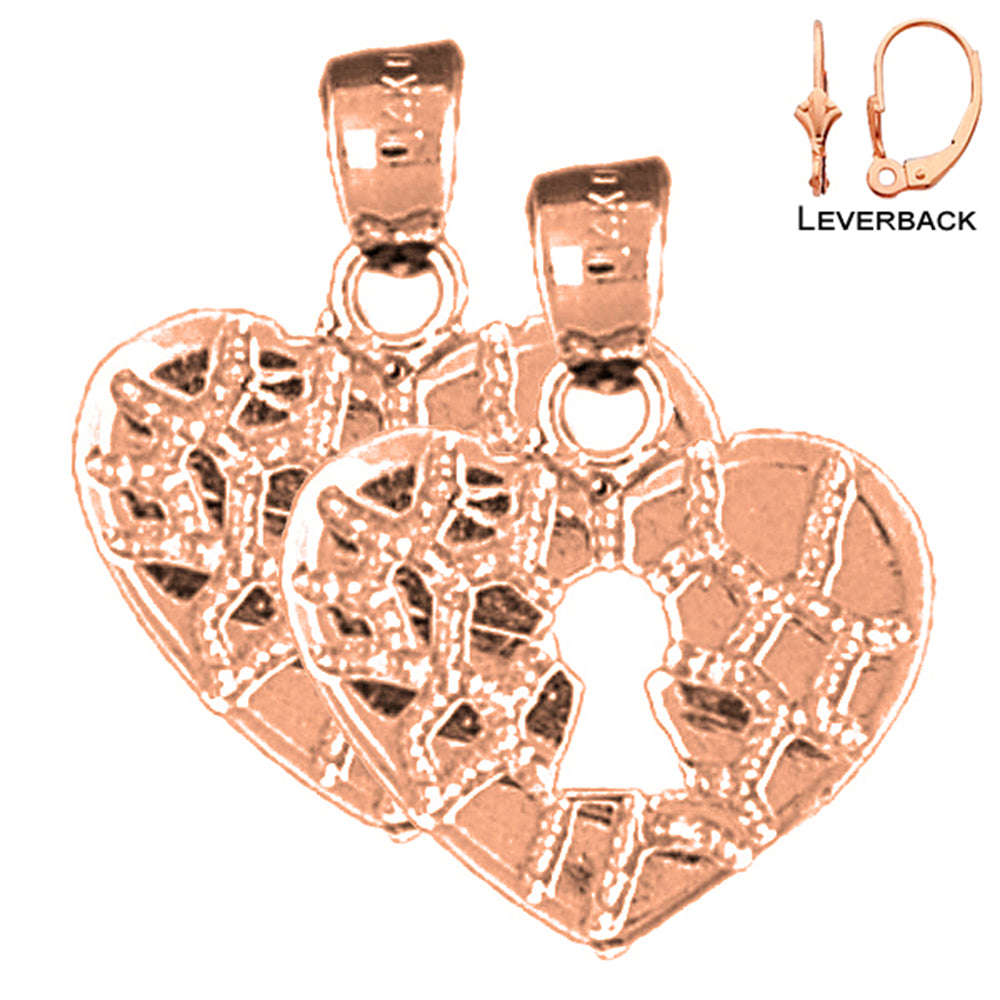 14K oder 18K Gold 21mm Nugget Herz Vorhängeschloss, Schloss Ohrringe