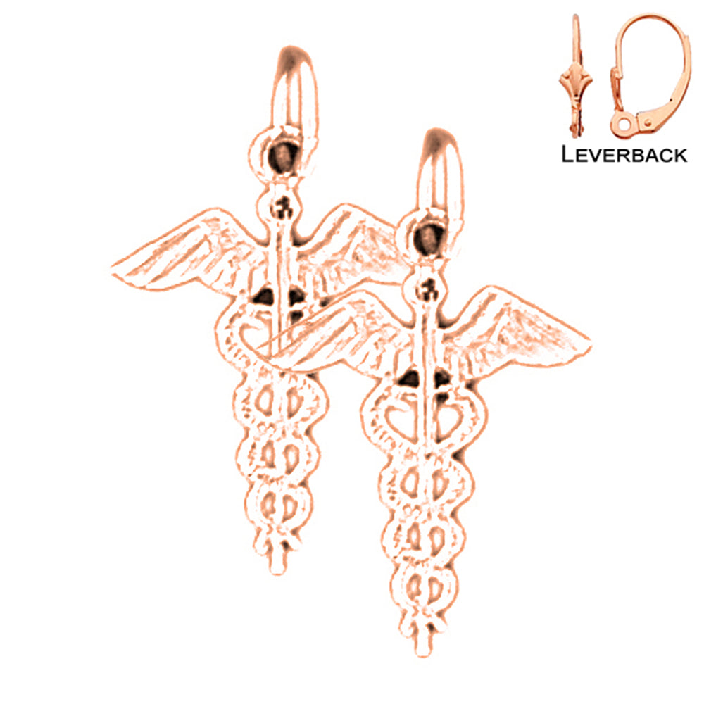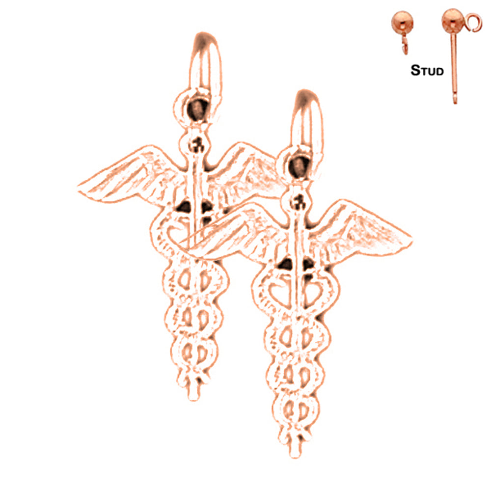 Caduceus-Ohrringe aus 14 Karat oder 18 Karat Gold, 22 mm