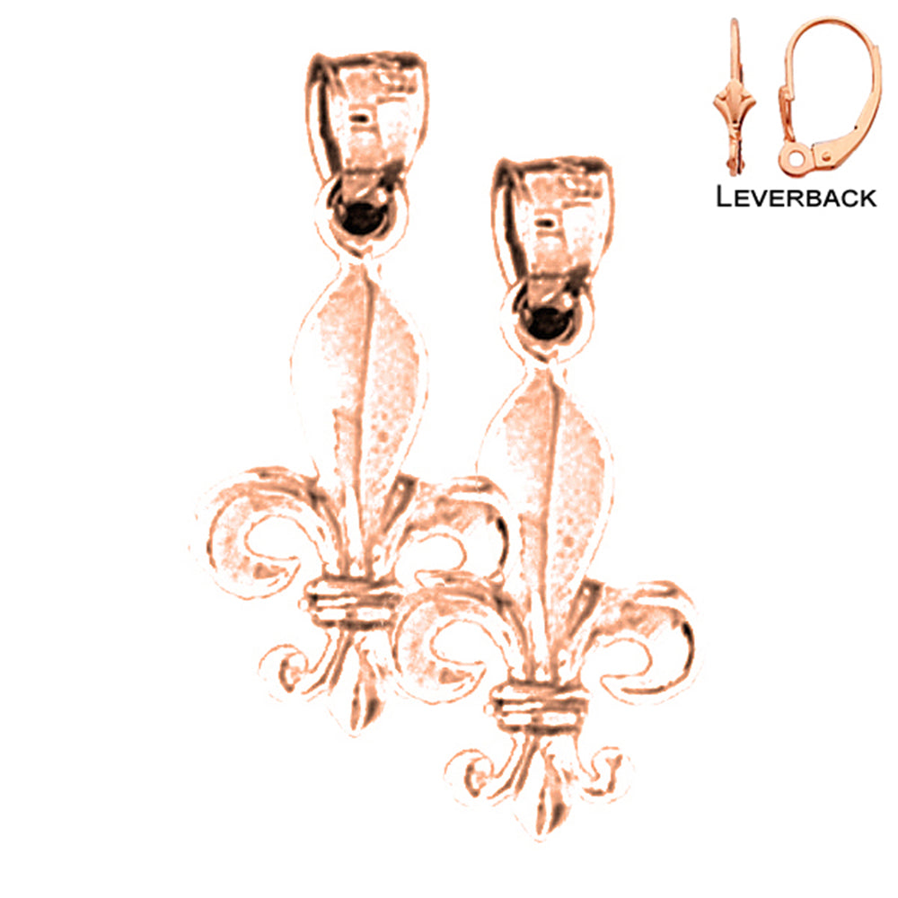 14K oder 18K Gold 22mm Fleur de Lis Ohrringe