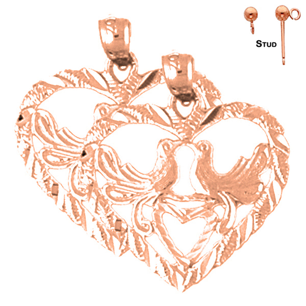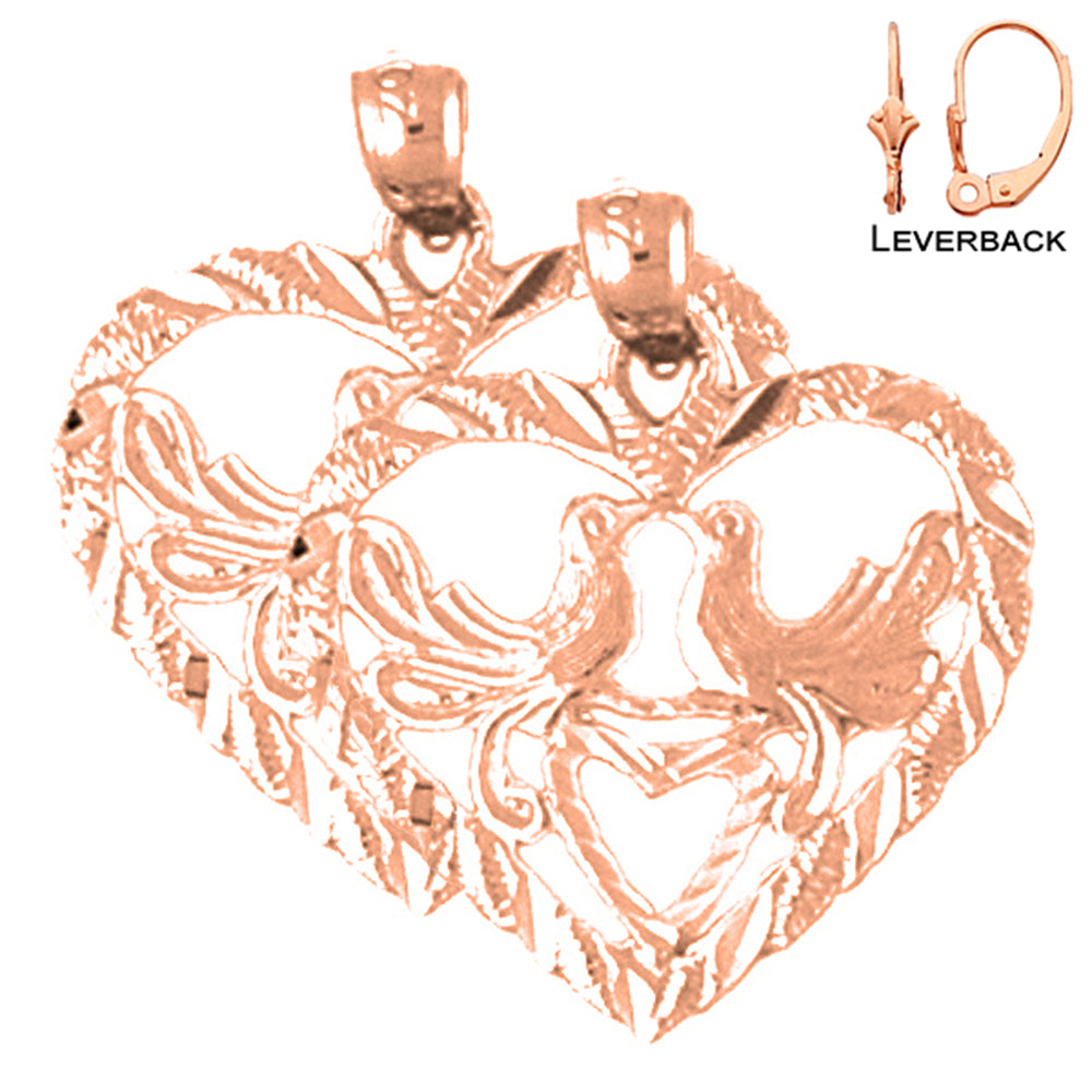 14K oder 18K Gold 24mm Herz mit Turteltauben Ohrringe