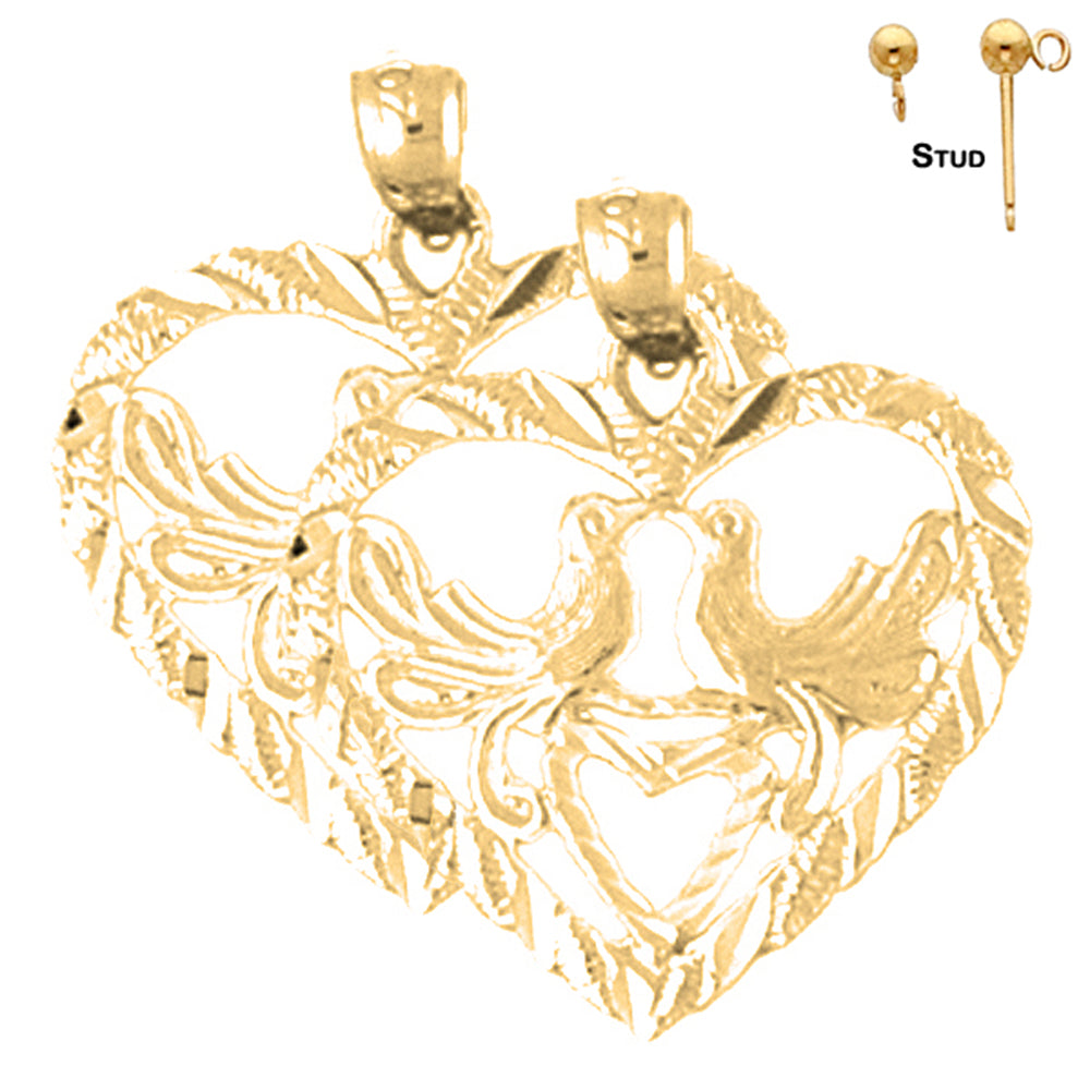 14K or 18K Gold 24mm Heart With Lovebirds Earrings
