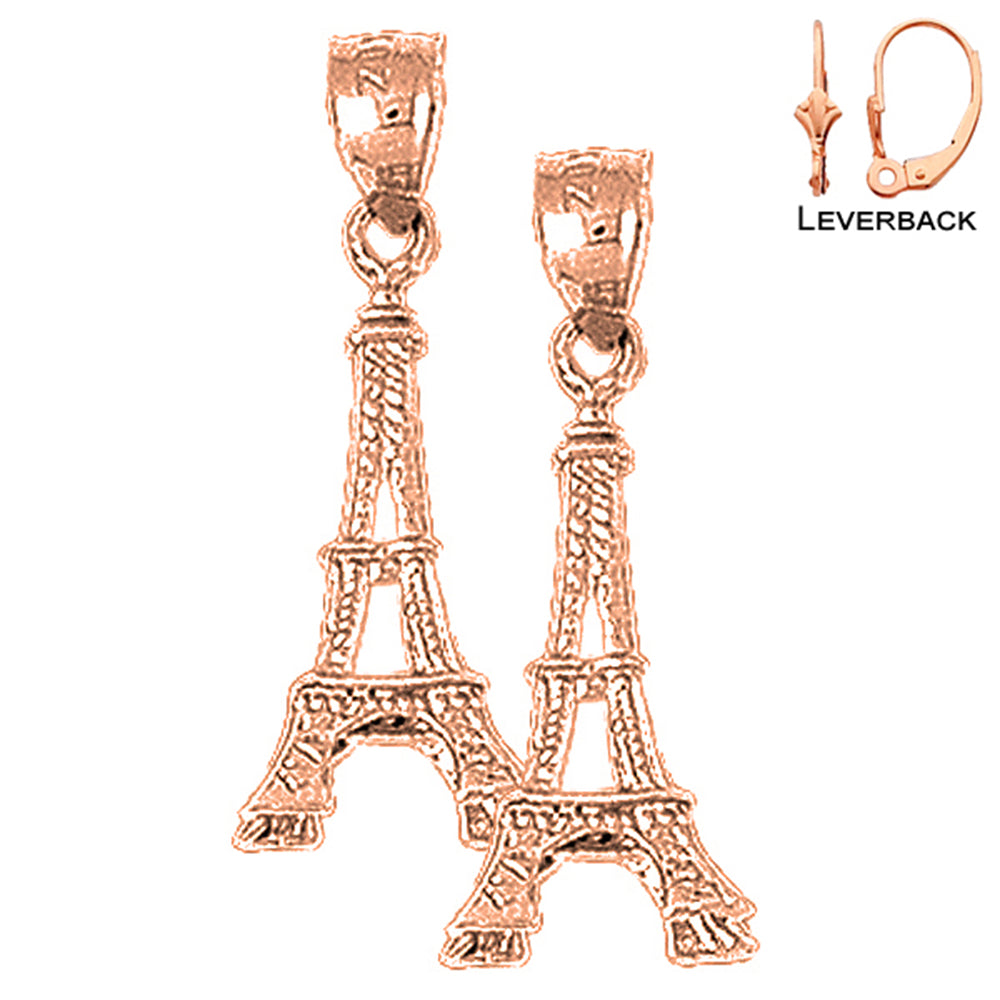 14K oder 18K Gold 26mm 3D Eiffelturm Ohrringe