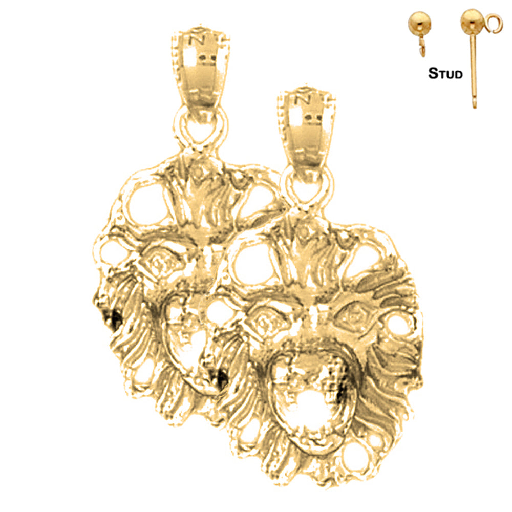 14K oder 18K Gold 26mm Löwenkopf Ohrringe