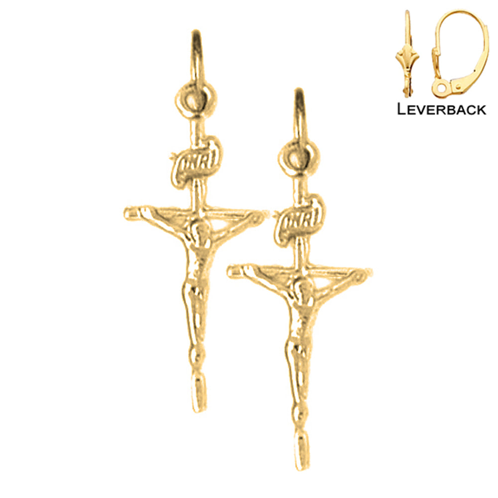 14K or 18K Gold 27mm INRI Crucifix Earrings
