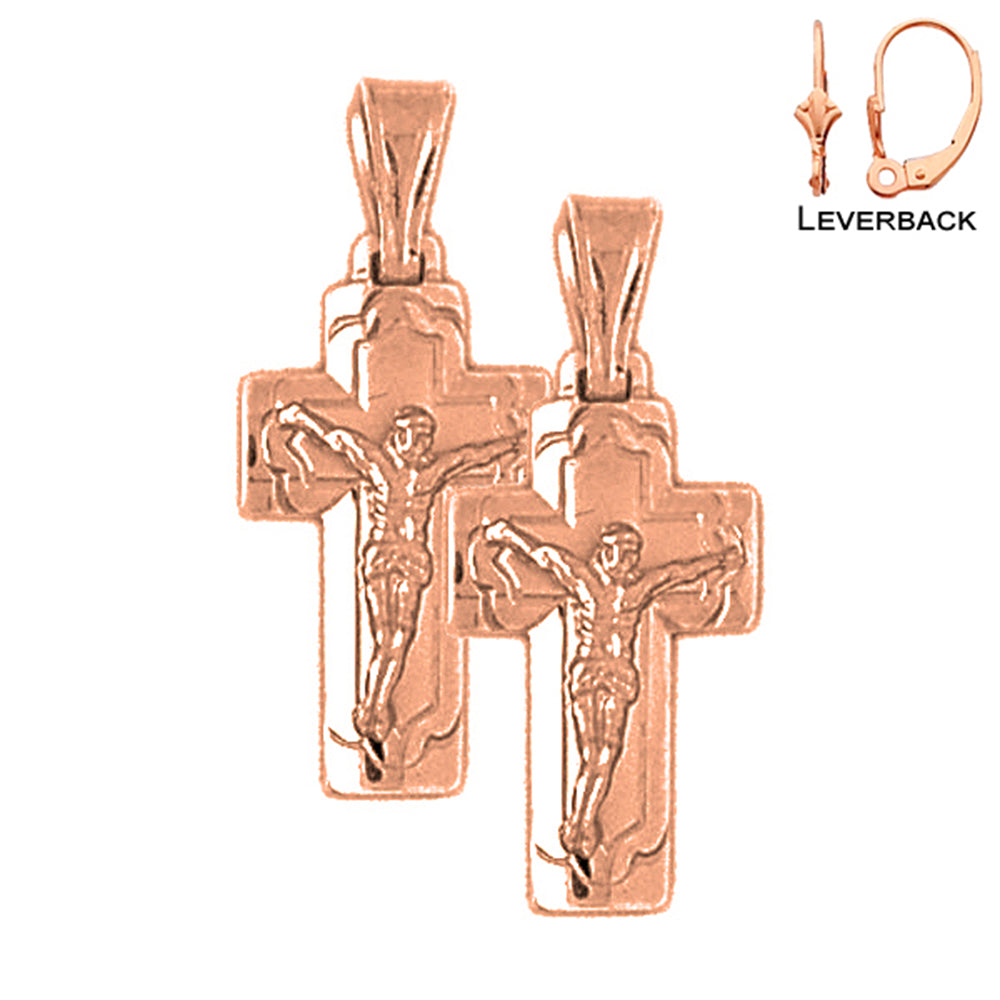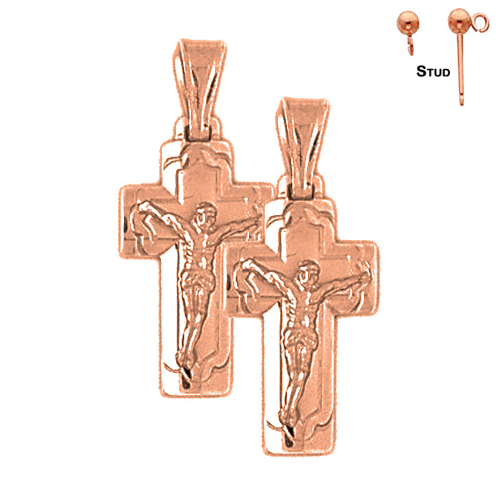 Ohrringe mit lateinischem Kruzifix aus 14 Karat oder 18 Karat Gold