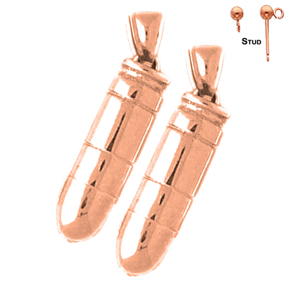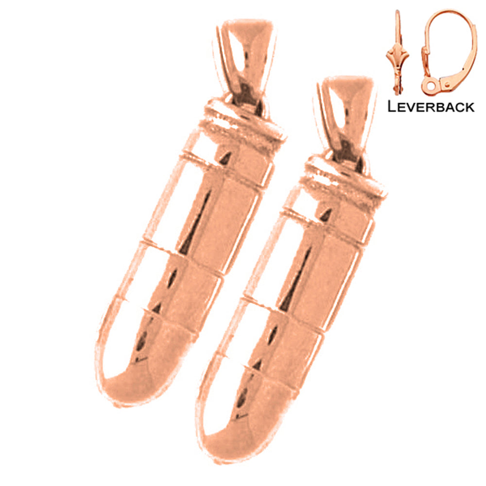 14K or 18K Gold 28mm 3D Bullet Earrings
