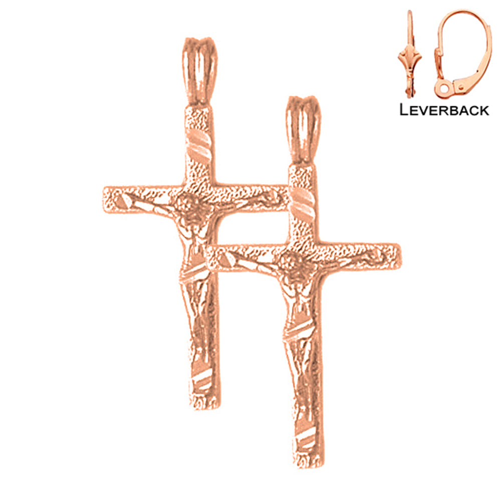 Ohrringe mit lateinischem Kruzifix aus 14 Karat oder 18 Karat Gold