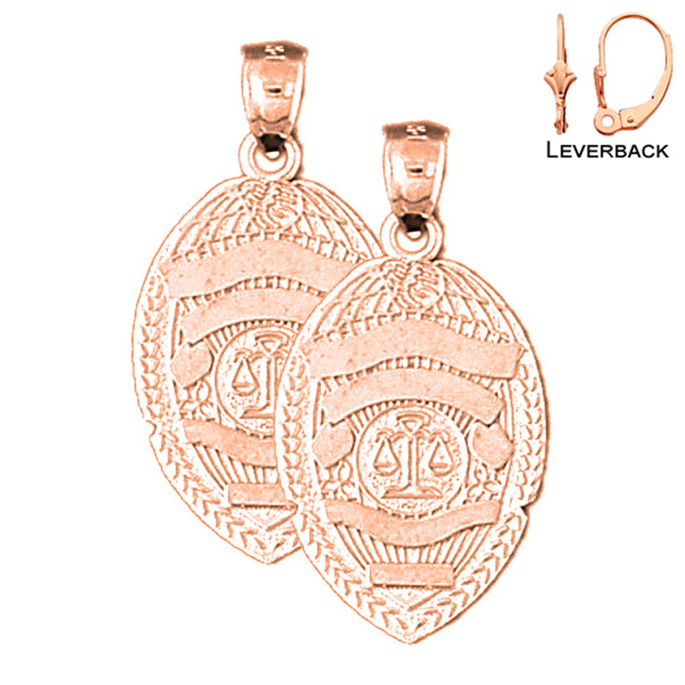 14K or 18K Gold 30mm Police Badge Earrings