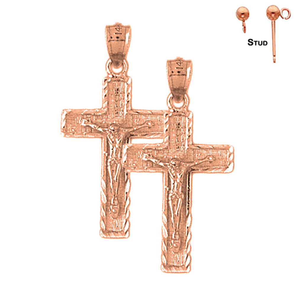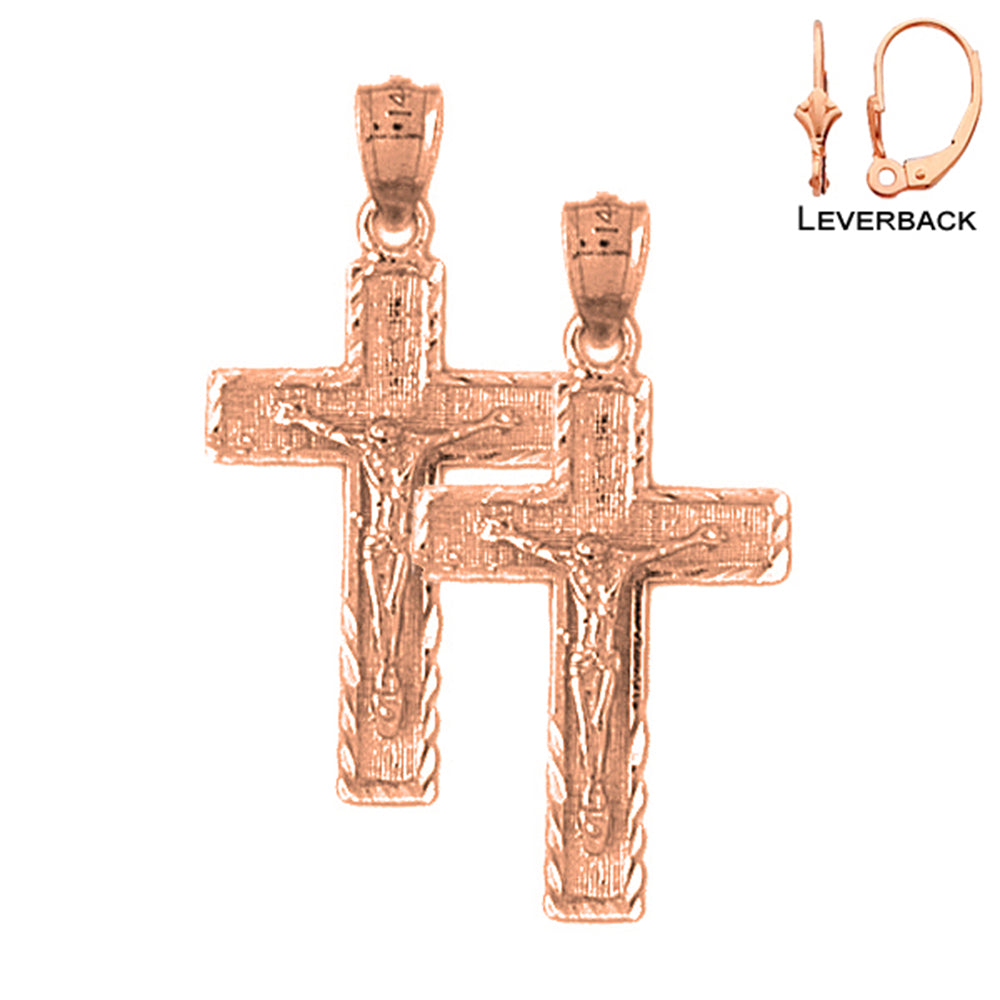 Ohrringe mit lateinischem Kruzifix aus 14 Karat oder 18 Karat Gold