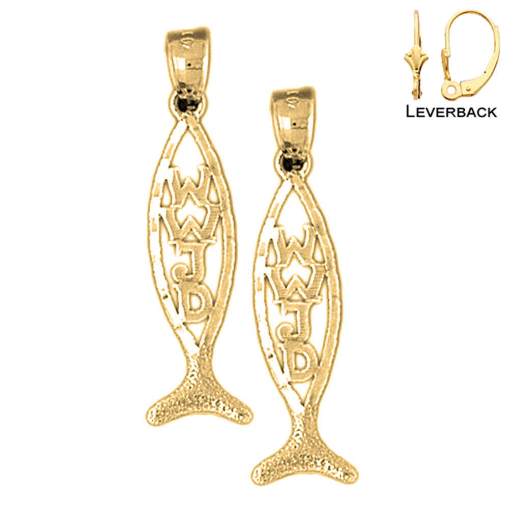 14K or 18K Gold 33mm Christian Fish With WWJD Earrings