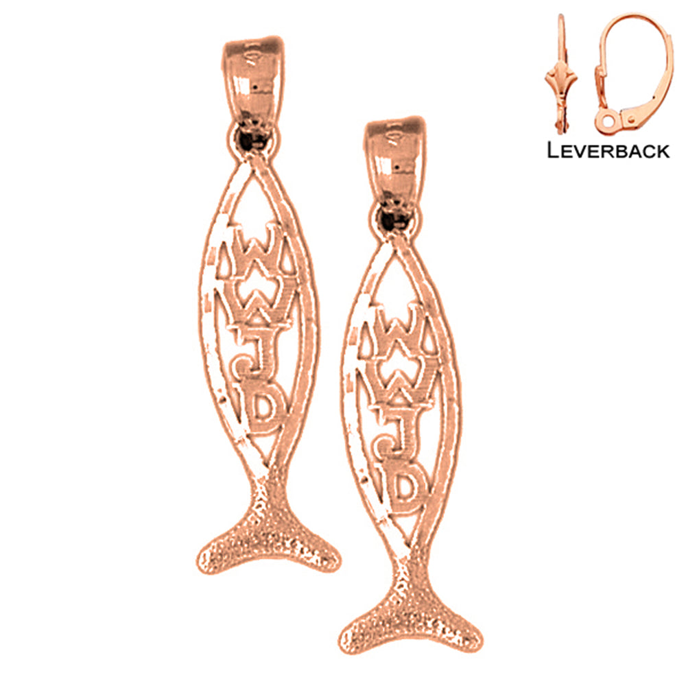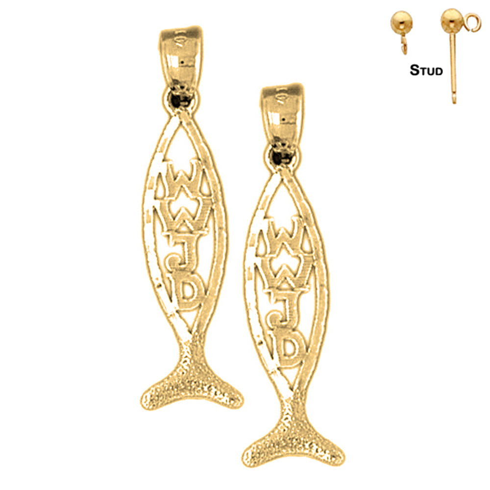 14K oder 18K Gold Christlicher Fisch mit WWJD Ohrringen