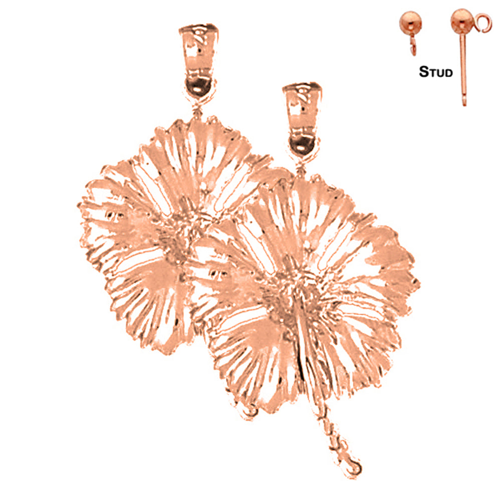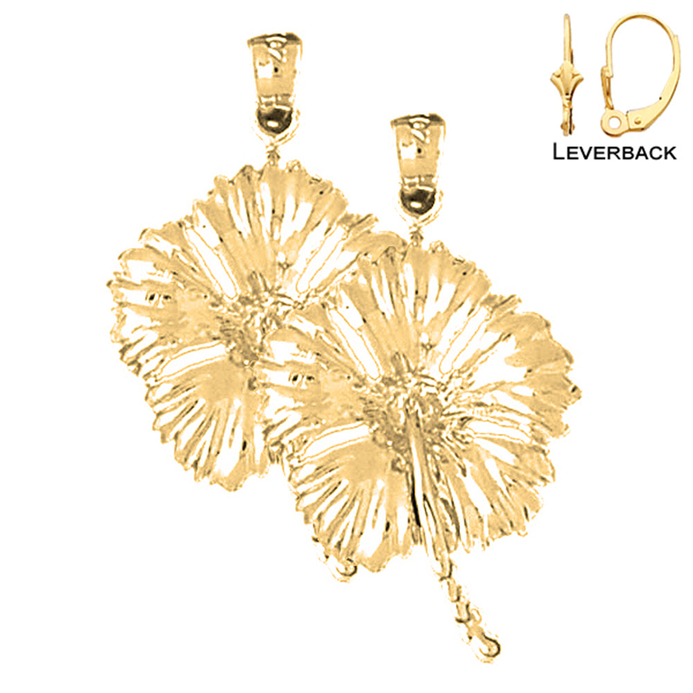 14K oder 18K Gold 33mm Hibiskusblüten Ohrringe