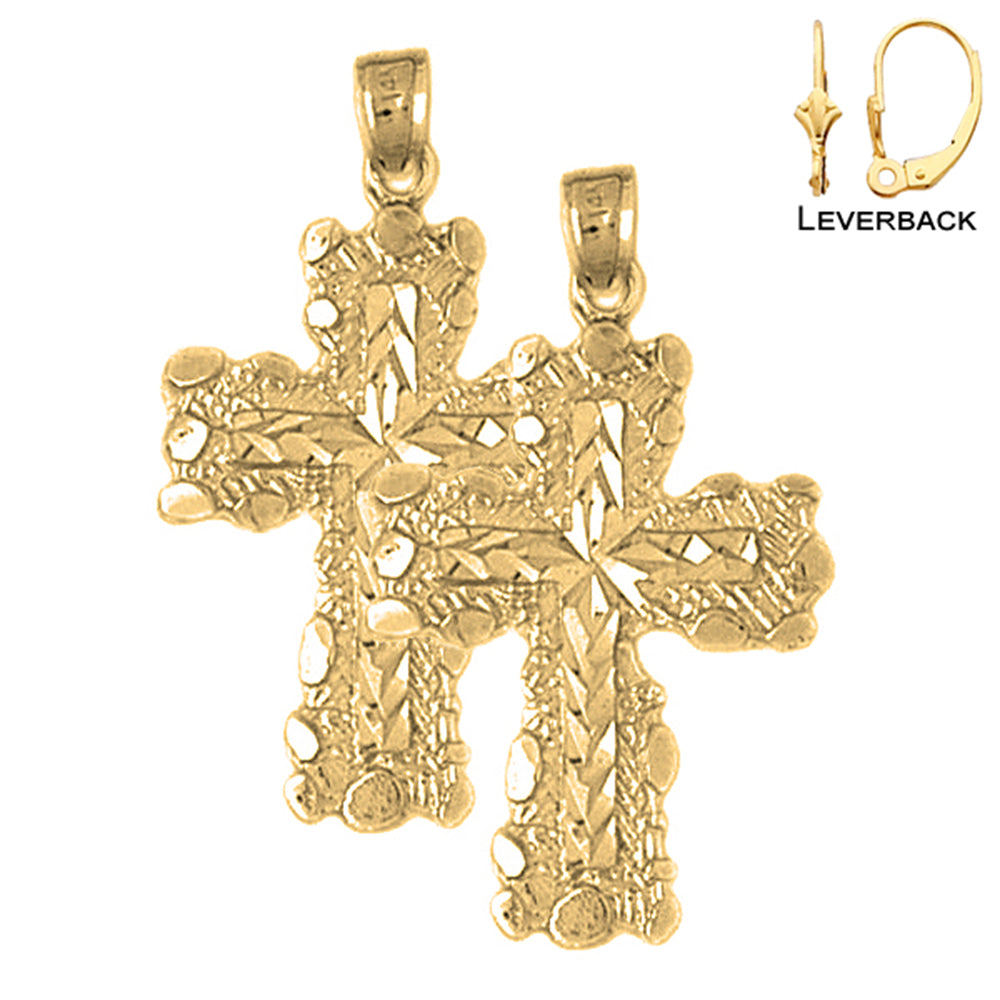 14K or 18K Gold 34mm Nugget Cross Earrings