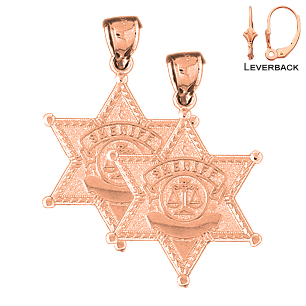 Ohrringe mit Sheriff-Abzeichen aus 14 Karat oder 18 Karat Gold