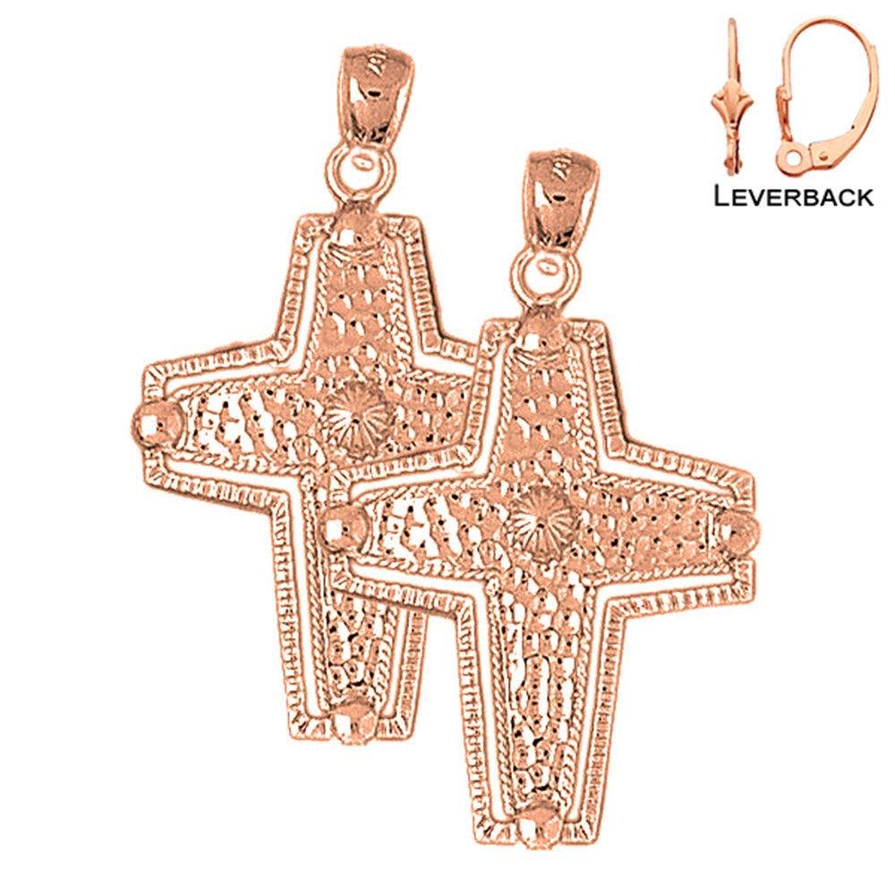14K or 18K Gold 43mm Coticed Cross Earrings