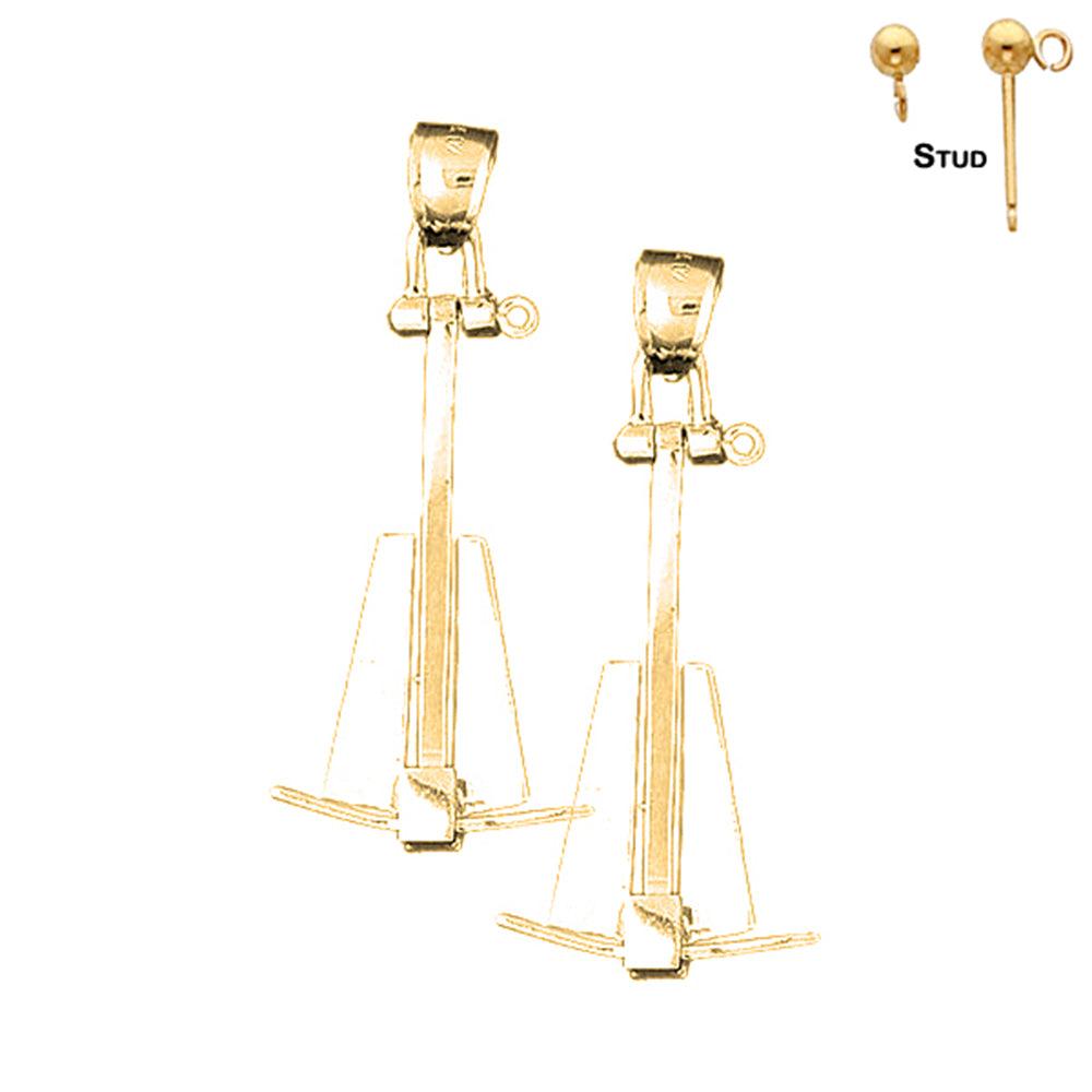 14K oder 18K Gold 47mm 3D Anker Ohrringe