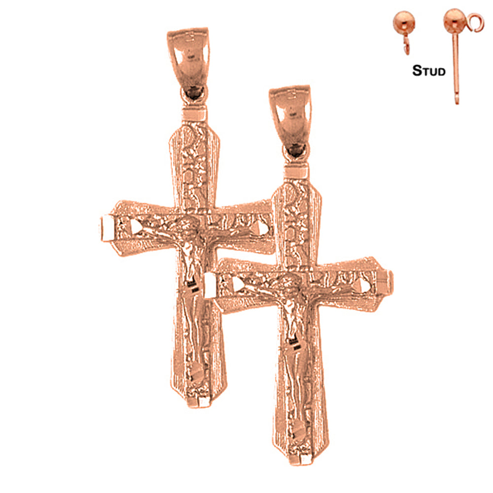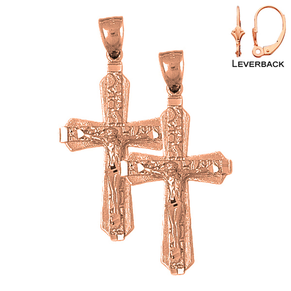 14K or 18K Gold 47mm Nugget Crucifix Earrings