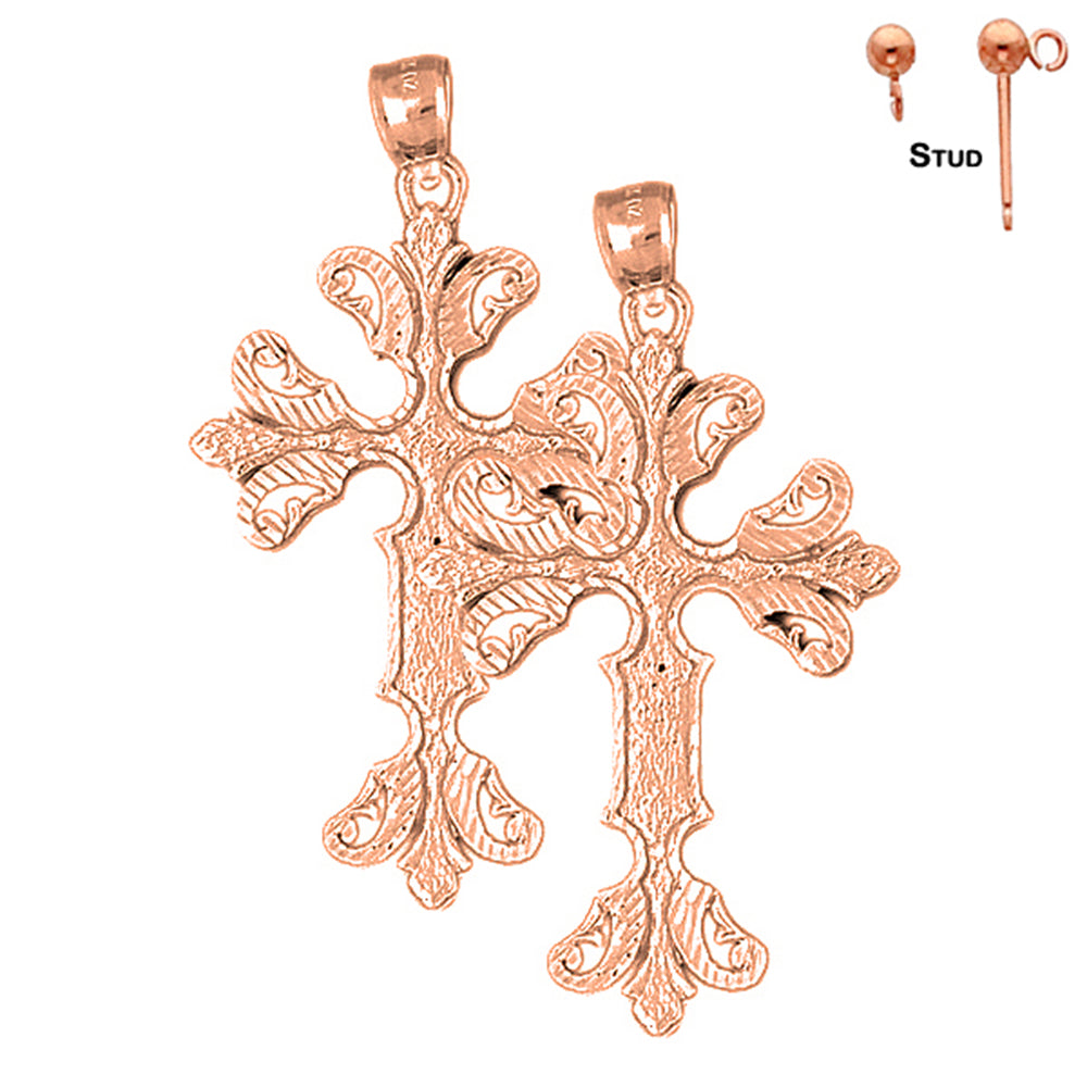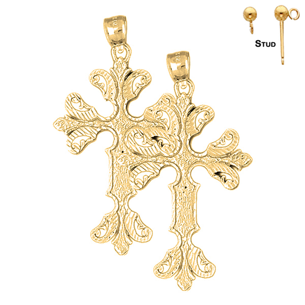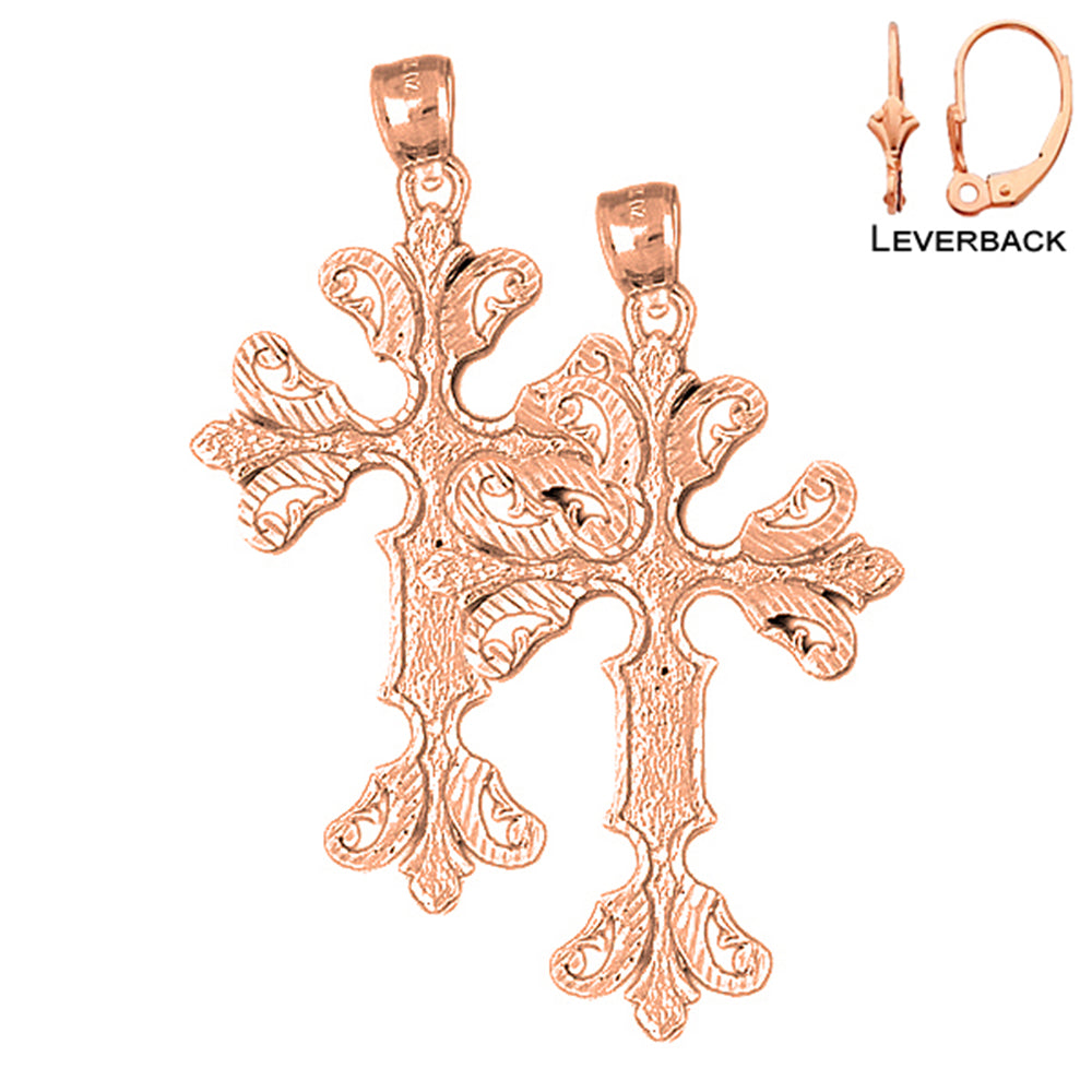 14K oder 18K Gold Florale Kreuz Ohrringe