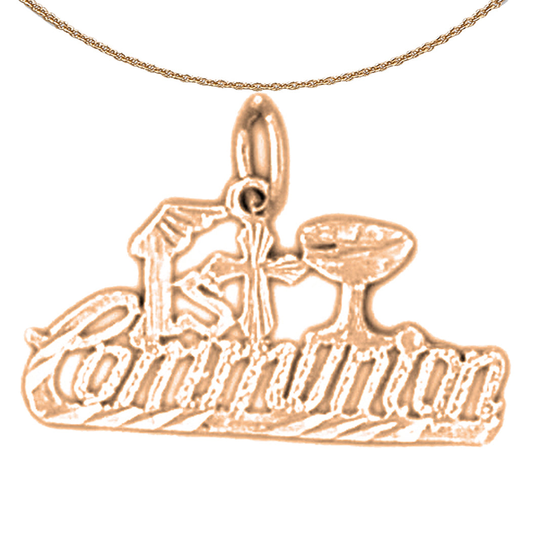 Dies ist ein eleganter Anhänger aus 14- oder 18-karätigem Gold zur Erstkommunion. Dieser Anhänger aus 14- oder 18-karätigem Gold ist 16 mm lang und 22 mm breit. Die Maße umfassen den Ring. JewelsObsession fertigt alle Goldschmuckstücke in unserer hochmodernen Produktionsstätte.