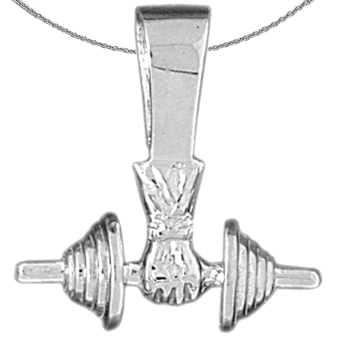 Dieser wunderschöne 3-D-Hantelanhänger aus 10K, 14K oder 18K Gold ist 24 mm lang und 24 mm breit. Die Maße umfassen die Öse. JewelsObsession stellt alle Goldschmuckstücke in unserer hochmodernen Produktionsstätte her.