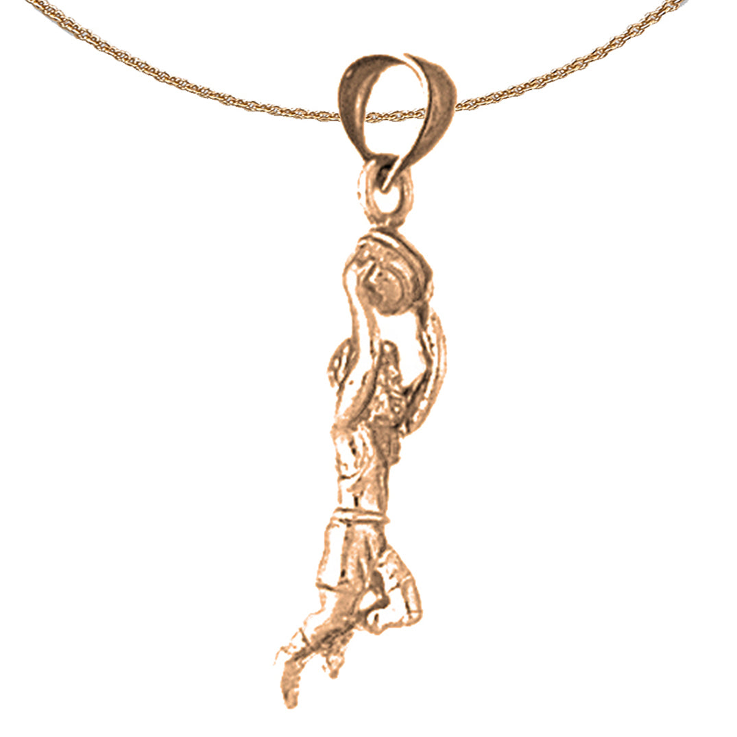 3D-Anhänger mit Basketballspieler aus 10-karätigem, 14-karätigem oder 18-karätigem Gold