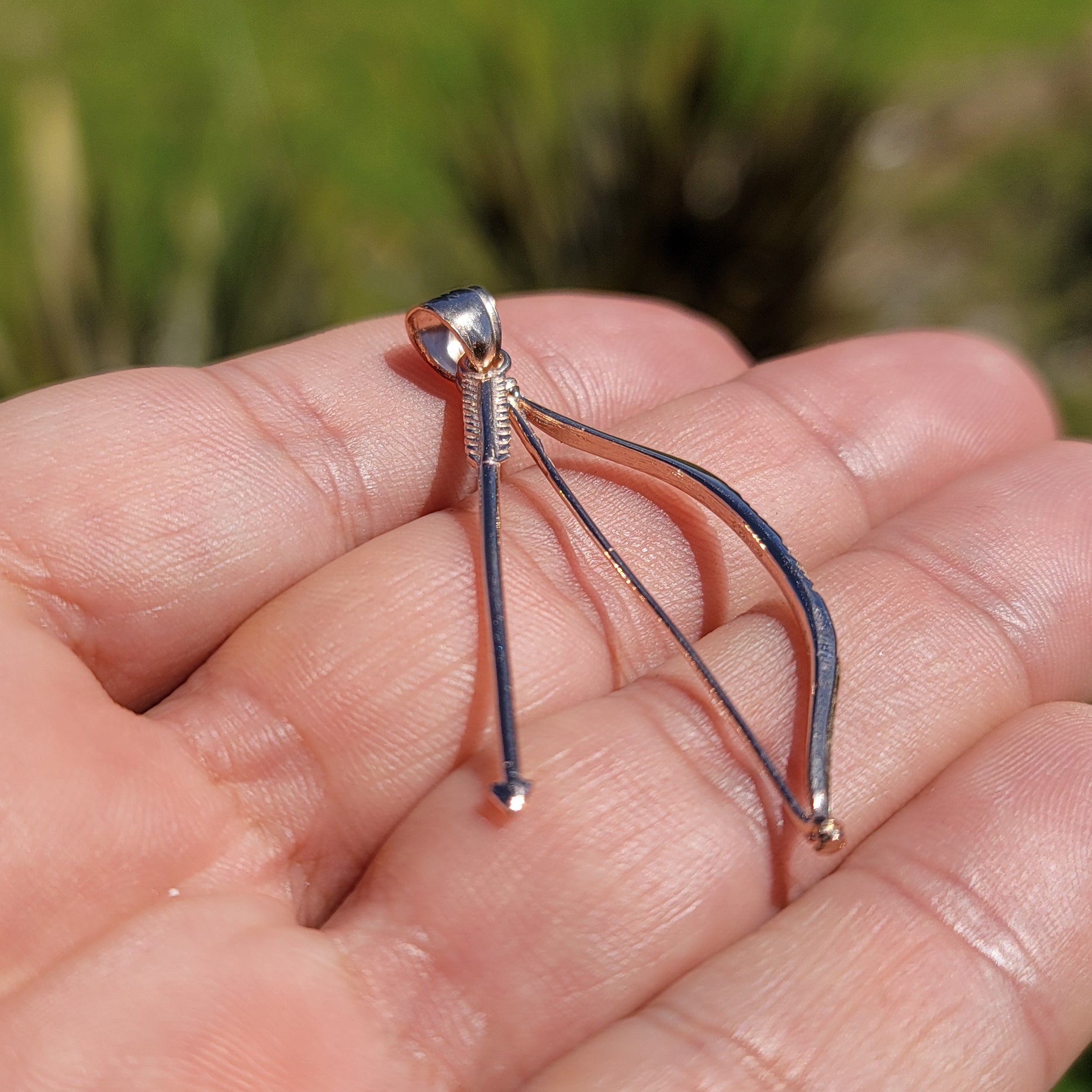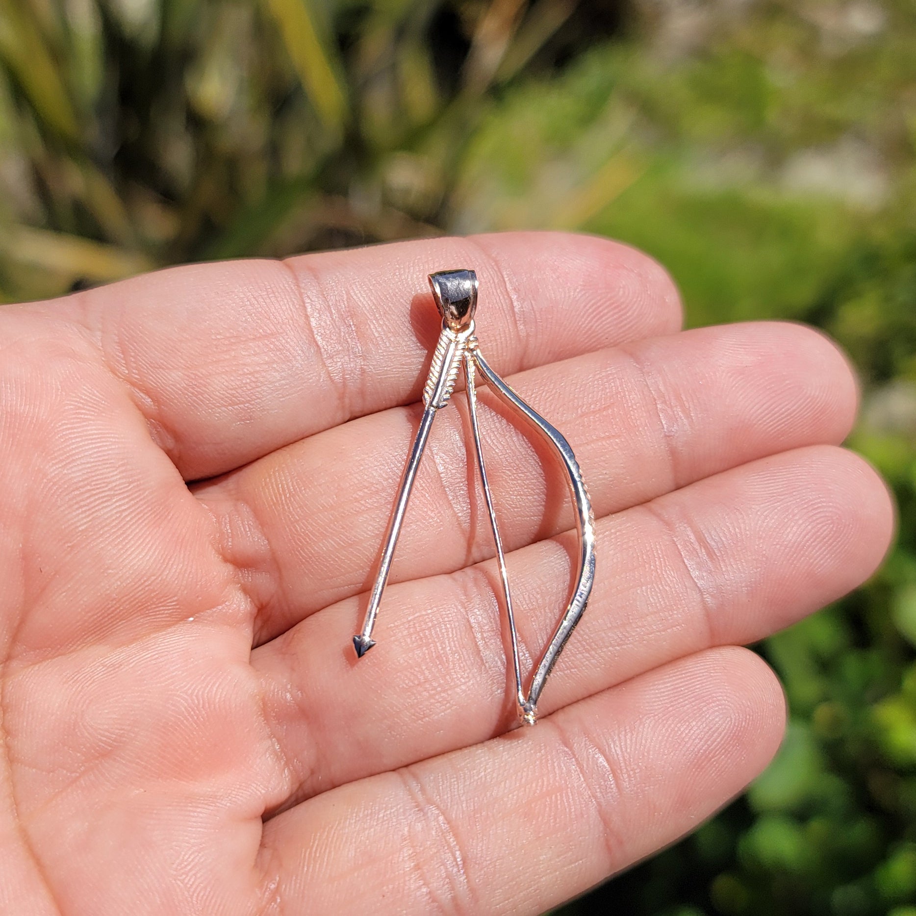 10K, 14K or 18K Gold 3D Bow & Arrow Pendant