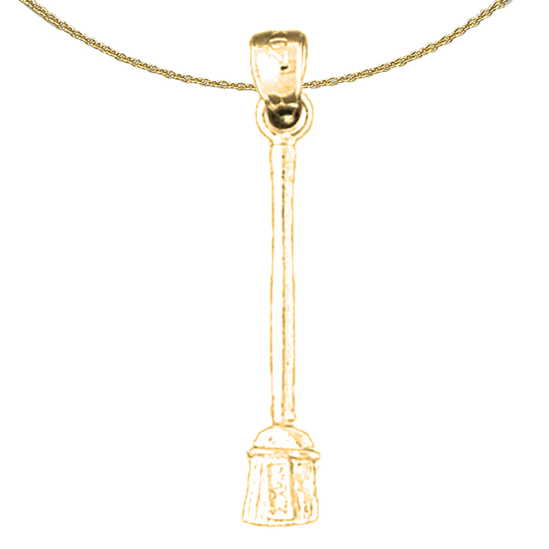 Dies ist ein eleganter 3-D-Besenanhänger aus 14- oder 18-karätigem Gold. Dieser Anhänger aus 14- oder 18-karätigem Gold ist 29 mm lang und 5 mm breit. Die Maße umfassen den Ring. JewelsObsession stellt alle Goldschmuckstücke in unserer hochmodernen Produktionsstätte her.