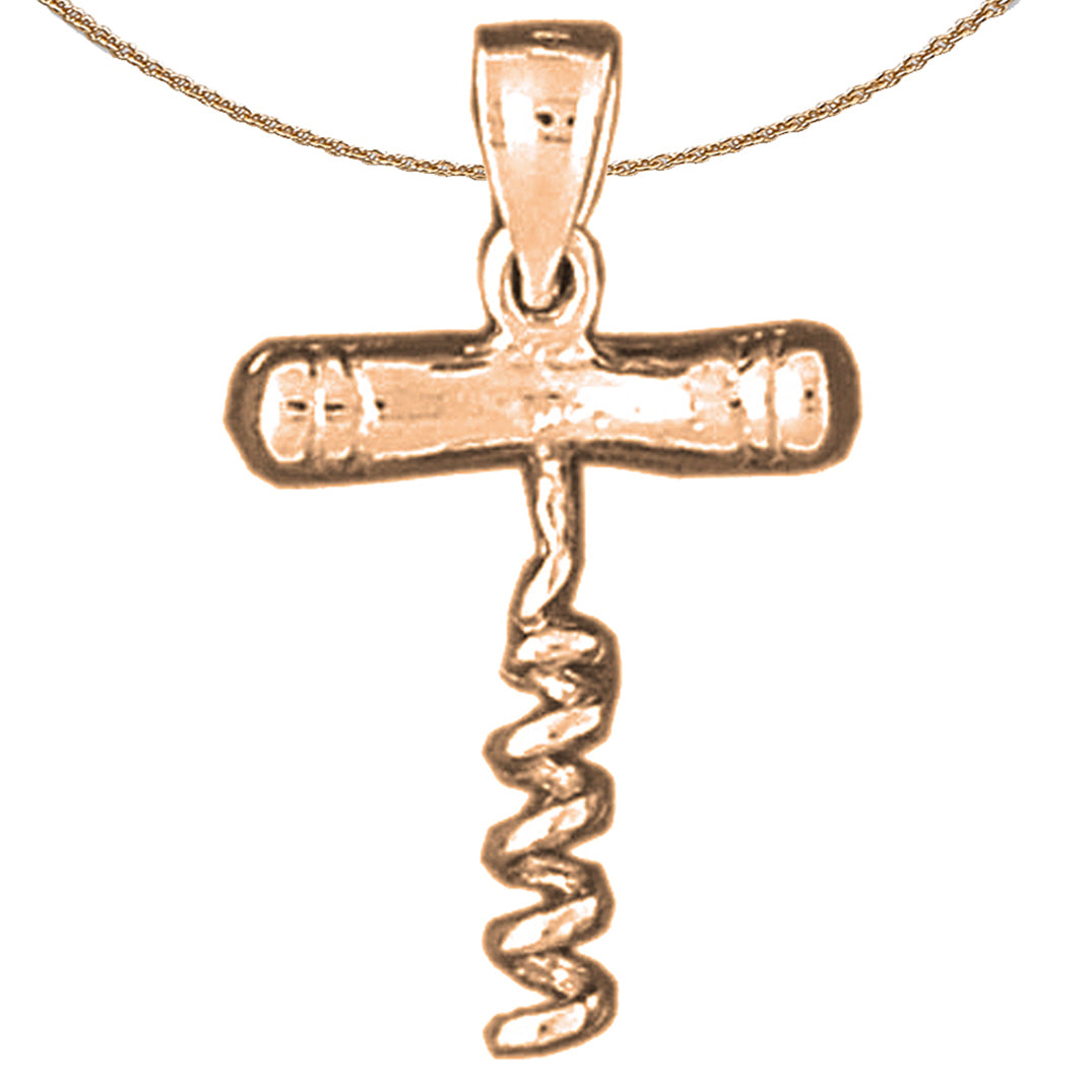 10K, 14K or 18K Gold 3D Cork Screw Pendant