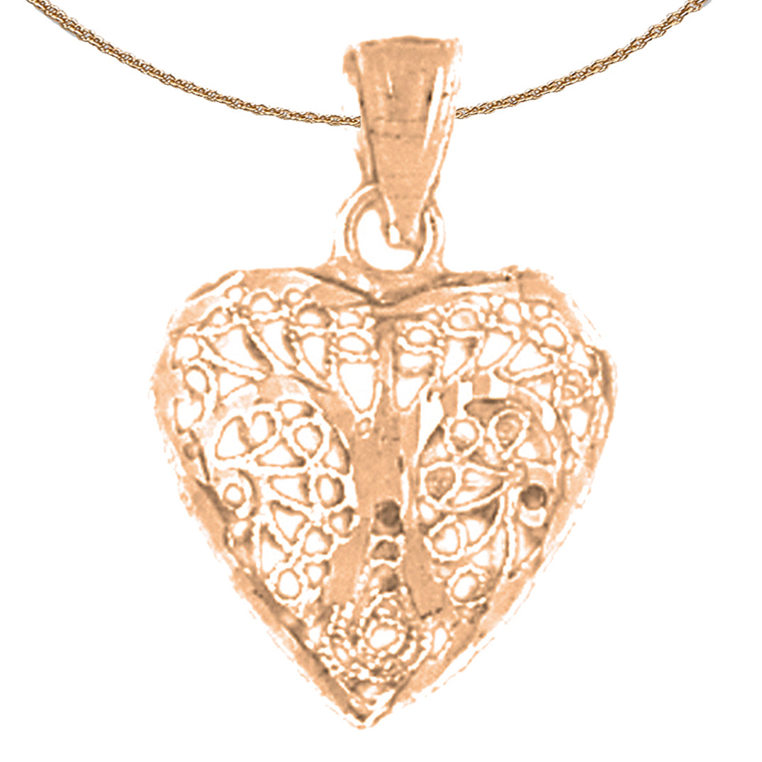 14K oder 18K Gold 3D Filigran Herz Anhänger