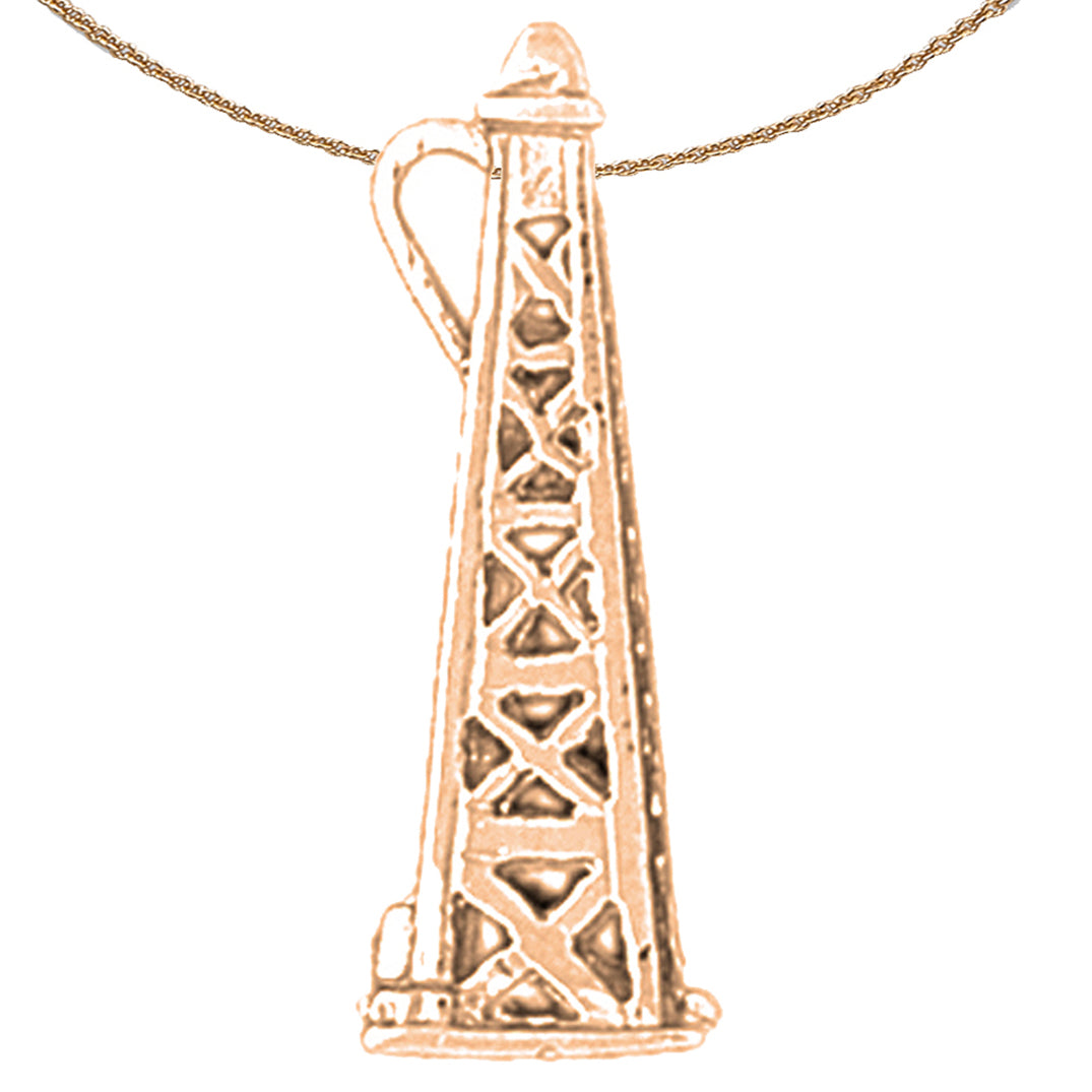 10K, 14K or 18K Gold 3D Oil Rig Pendant