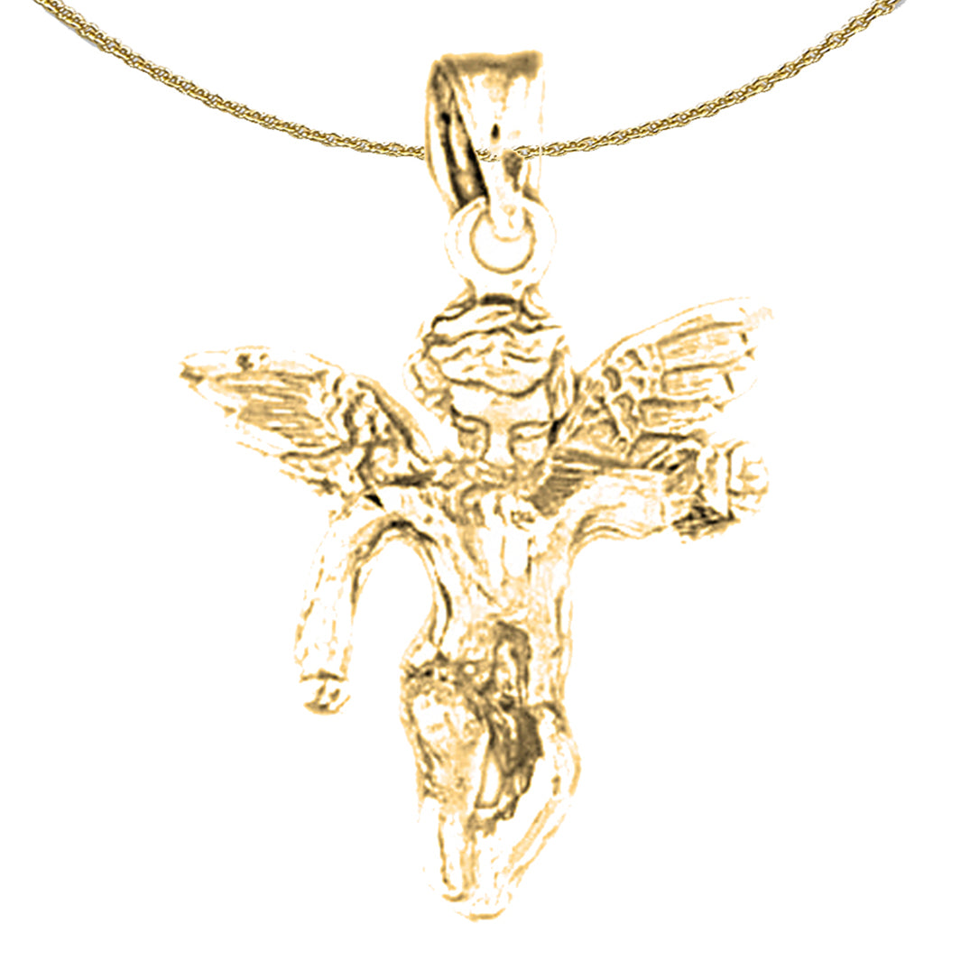 Dies ist ein atemberaubender Engelsanhänger aus 14- oder 18-karätigem Gold. Dieser Anhänger aus 14- oder 18-karätigem Gold ist 27 mm lang und 20 mm breit. Die Maße umfassen den Ring. JewelsObsession stellt alle Goldschmuckstücke in unserer hochmodernen Produktionsstätte her.