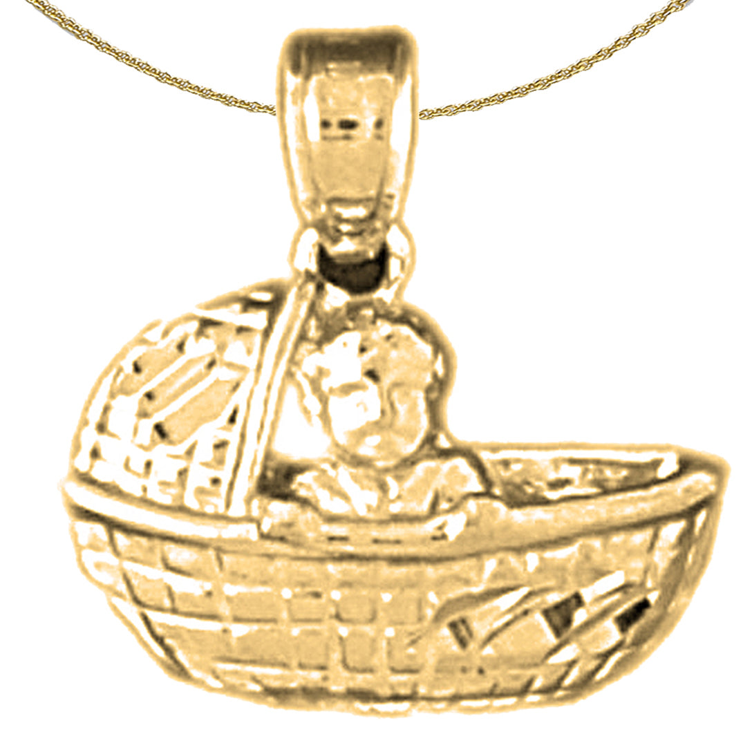 Dies ist ein atemberaubender Babykorbanhänger aus 14- oder 18-karätigem Gold. Dieser Anhänger aus 14- oder 18-karätigem Gold ist 16 mm lang und 16 mm breit. Die Maße umfassen den Ring. JewelsObsession stellt sämtlichen Goldschmuck in unserer hochmodernen Produktionsstätte her.
