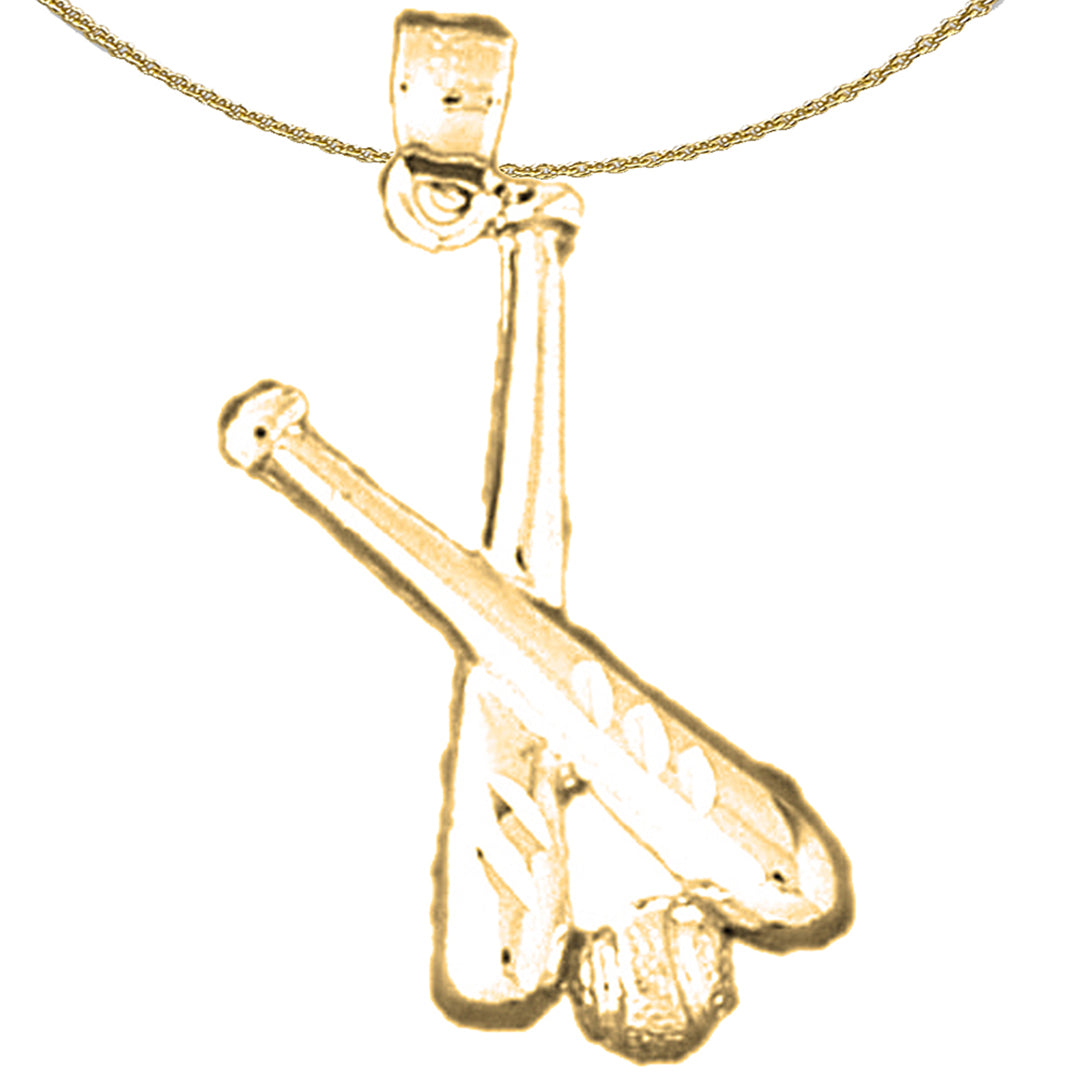 Dies ist ein atemberaubender Baseballschläger-Anhänger aus 14- oder 18-karätigem Gold. Dieser Anhänger aus 14- oder 18-karätigem Gold ist 28 mm lang und 18 mm breit. Die Maße umfassen den Ring. JewelsObsession stellt alle Goldschmuckstücke in unserer hochmodernen Produktionsstätte her.