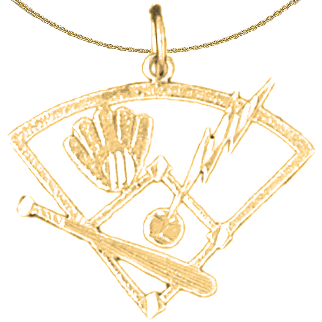 Dies ist ein wunderschöner Anhänger aus 14- oder 18-karätigem Gold mit Baseballfeldmotiv. Dieser Anhänger aus 14- oder 18-karätigem Gold ist 23 mm lang und 24 mm breit. Die Maße umfassen den Ring. JewelsObsession fertigt alle Goldschmuckstücke in unserer hochmodernen Produktionsstätte.
