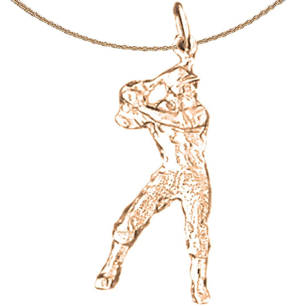 Dies ist ein atemberaubender Baseballspieler-Anhänger aus 14- oder 18-karätigem Gold. Dieser Anhänger aus 14- oder 18-karätigem Gold ist 33 mm lang und 13 mm breit. Die Maße umfassen den Ring. JewelsObsession stellt alle Goldschmuckstücke in unserer hochmodernen Produktionsstätte her.