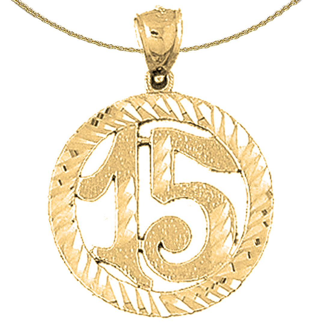 10K, 14K or 18K Gold Bezeled #15, Fifteen Pendant