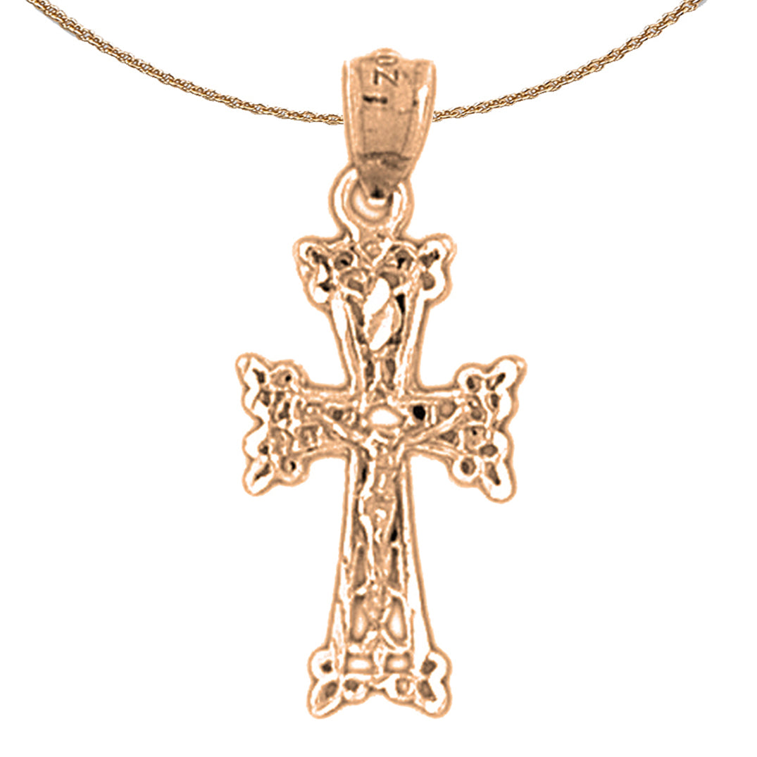14K oder 18K Gold Knospen Kruzifix Anhänger