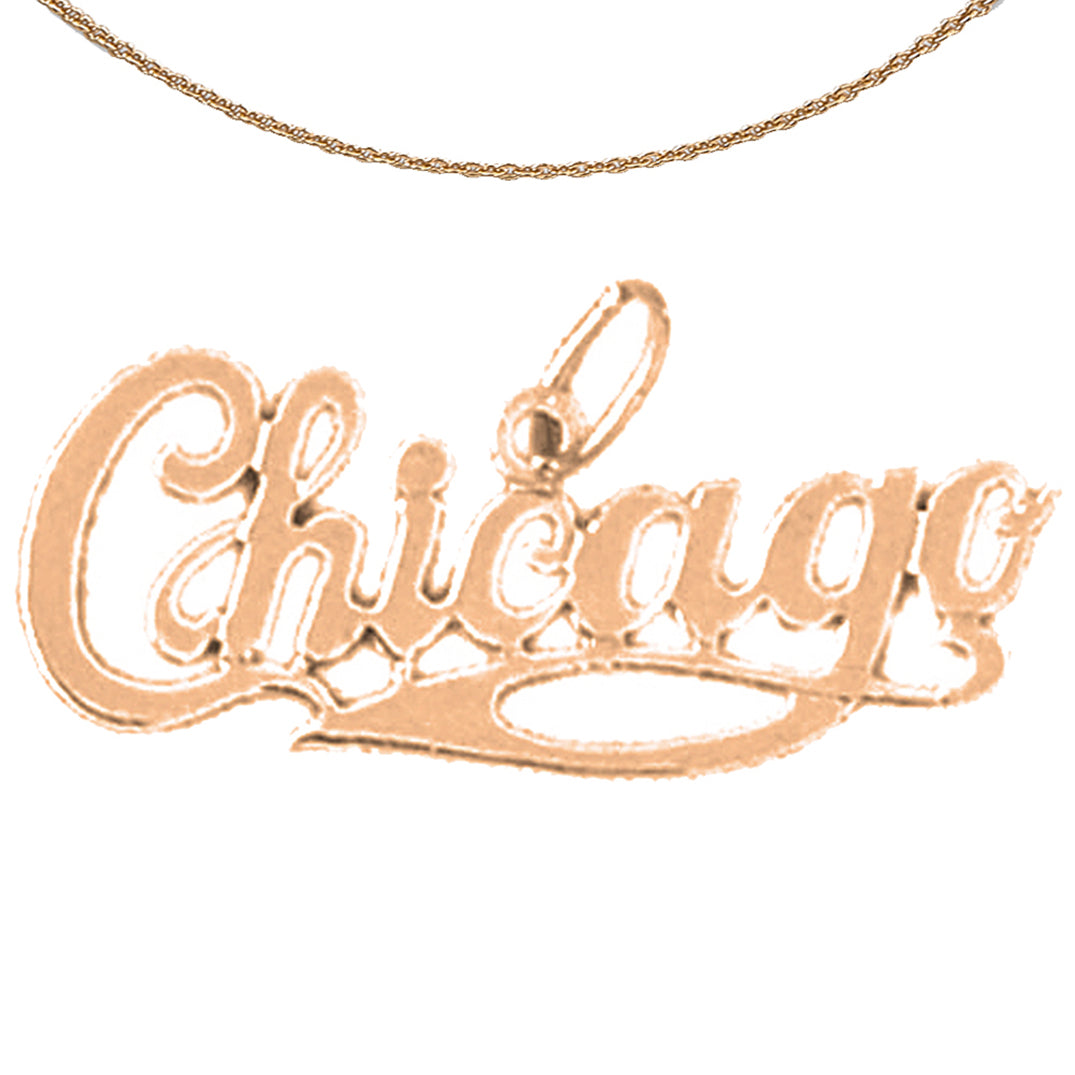 Dieser wunderschöne Chicago-Anhänger aus 14- oder 18-karätigem Gold ist 12 mm lang und 26 mm breit. Die Maße umfassen den Ring. JewelsObsession fertigt sämtlichen Goldschmuck in unserer hochmodernen Produktionsstätte.