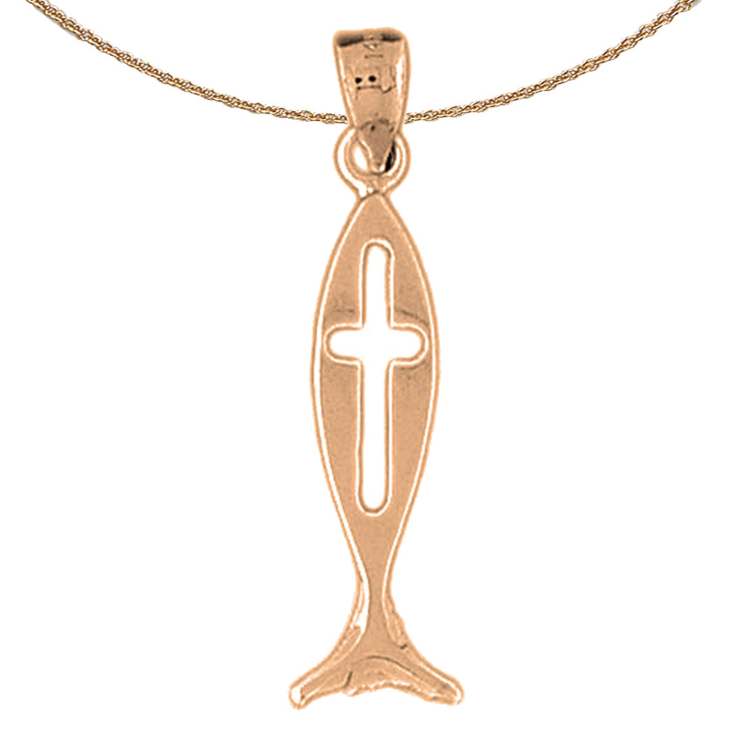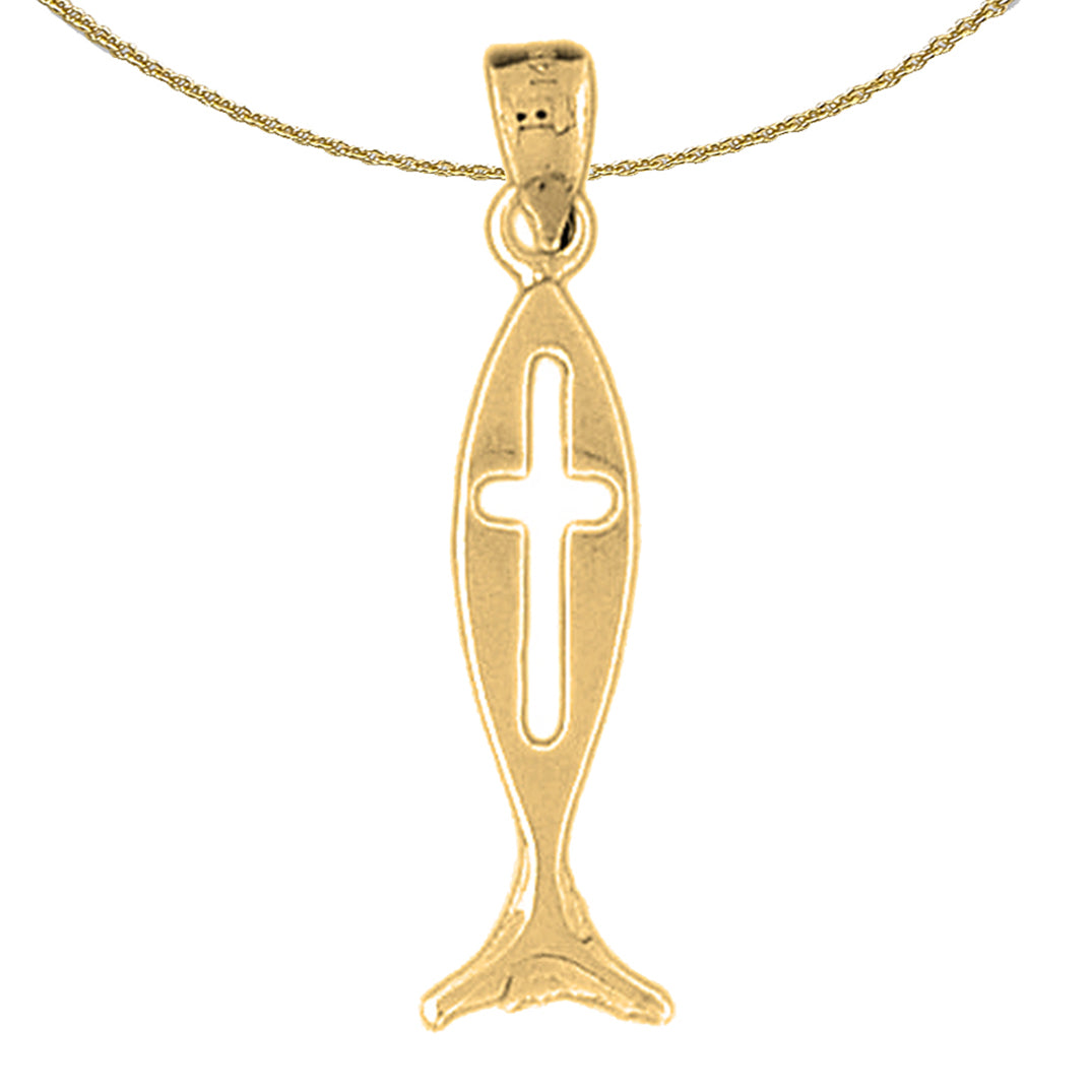 14K oder 18K Gold Christlicher Fisch mit Kreuzanhänger