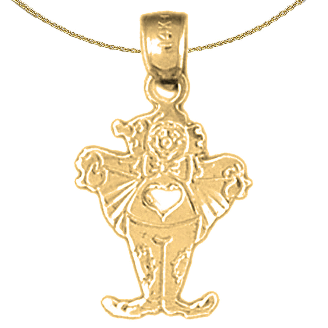 Dies ist ein wunderschöner Clown-Anhänger aus 14- oder 18-karätigem Gold. Dieser Anhänger aus 14- oder 18-karätigem Gold ist 22 mm lang und 12 mm breit. Die Maße umfassen den Ring. JewelsObsession stellt alle Goldschmuckstücke in unserer hochmodernen Produktionsstätte her.