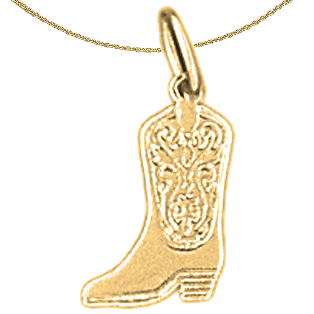 Dieser wunderschöne Anhänger aus 14- oder 18-karätigem Gold in Form von Cowboystiefeln. Dieser Anhänger aus 14- oder 18-karätigem Gold misst 18 x 20 x 30 cm. Die Maße umfassen den Ballen. JewelsObsession stellt alle Goldschmuckstücke in unserer hochmodernen Produktionsstätte her.