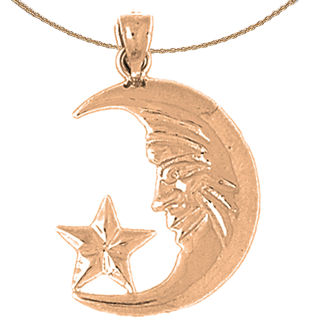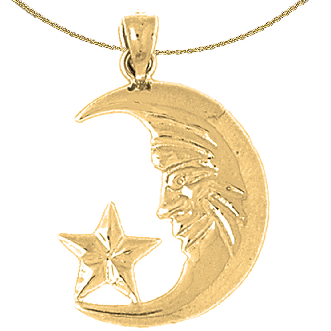 10K, 14K oder 18K Gold Halbmondgesicht mit Sternanhänger